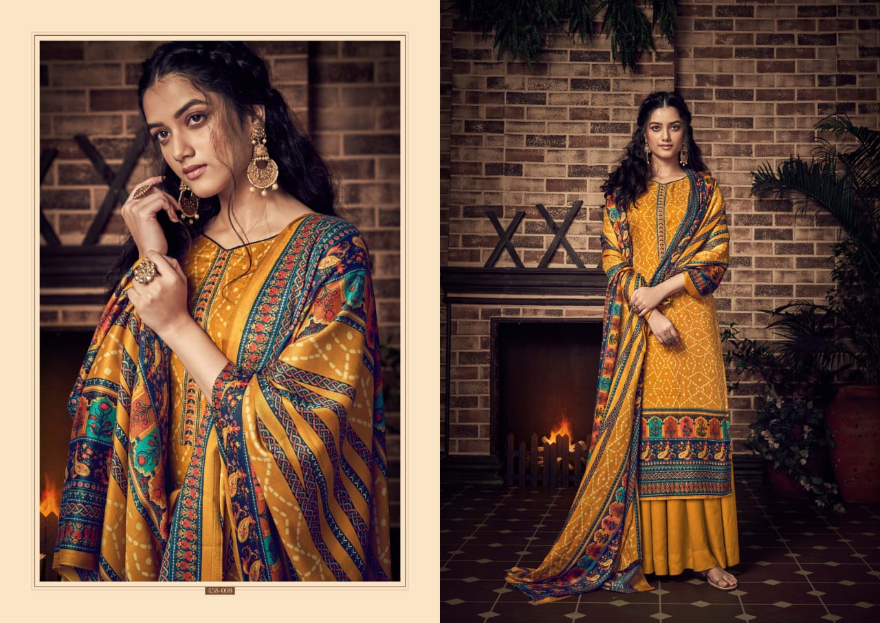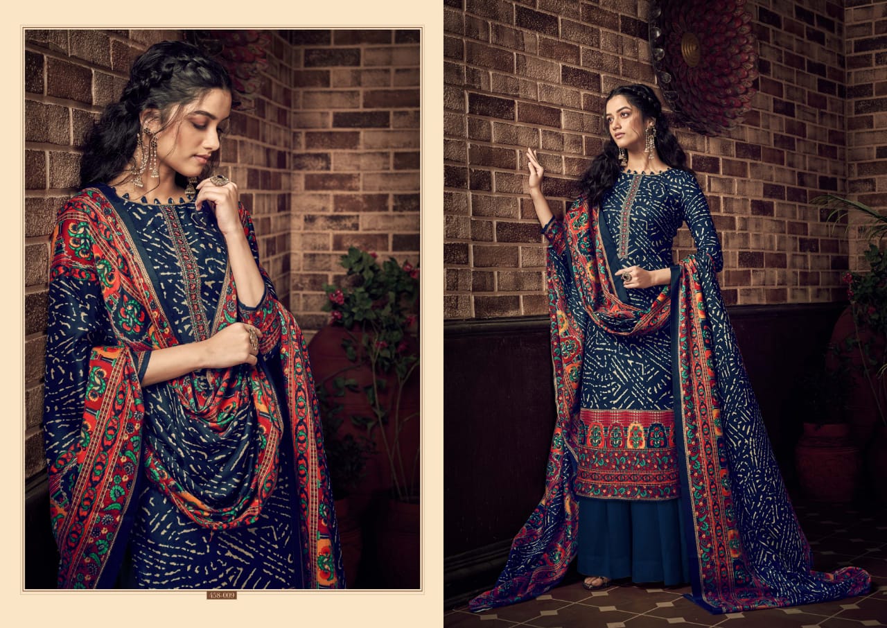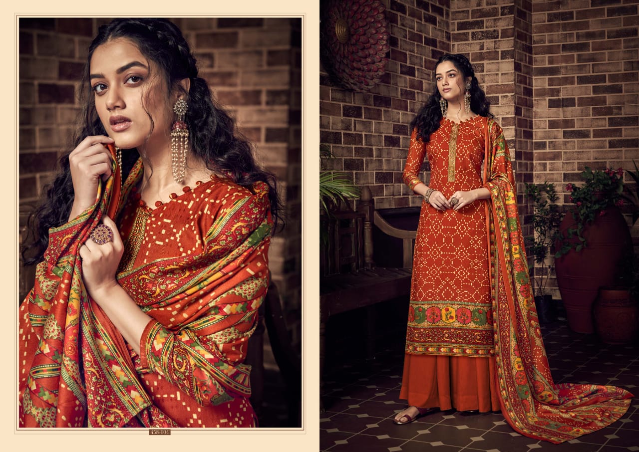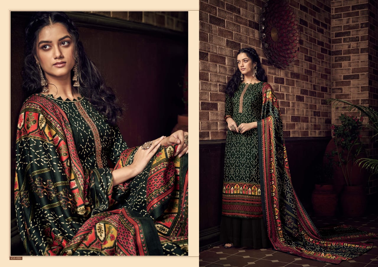 # Super Hit Collection # Premium Pure Pashmina # Kashmiri Embroidery Work _*......BelliZa DesigNer StuDio......*_ _presents_ *"DESIRE"* _the art of kashmiri work_ ??Top: 100% Pure Pashmina Digital Style Print with *Kashmiri Embroidery work* (2.50 mtrs) ??Dupatta: Pure Pashmina Shawl (2.30 mtr) ??Bottom: Pure Pashmina Spun (3 mtrs apx) ??Pcs: 10 ??Selling Rate: 560/- (GST extra) Single 660+5% # Book Now At Belliza, Quality Pashmina Fabrics with Exquisite Designing at Best Price is our 'Cherished Legacy'. |