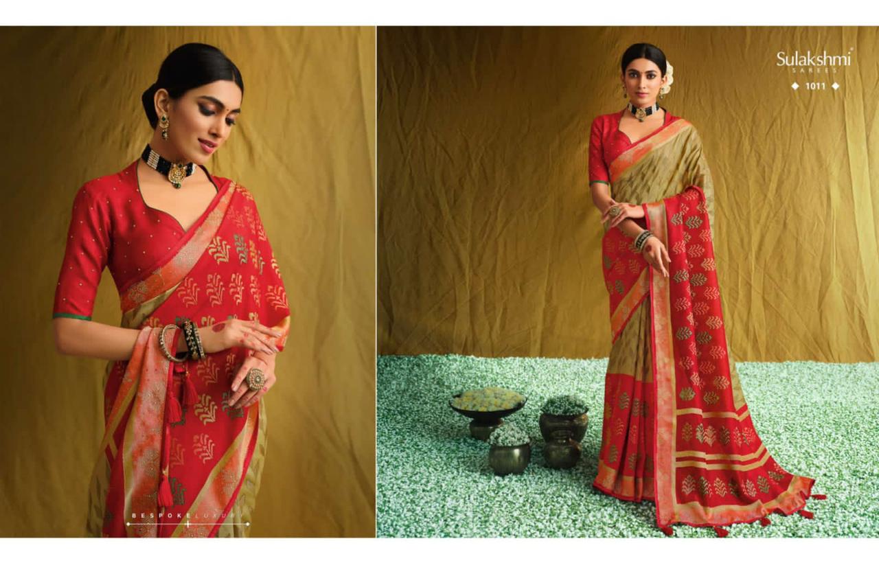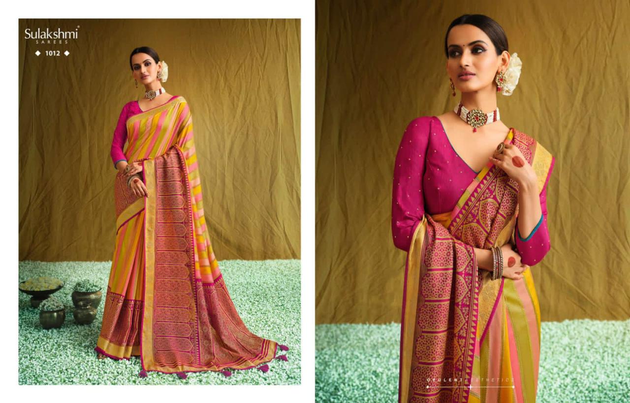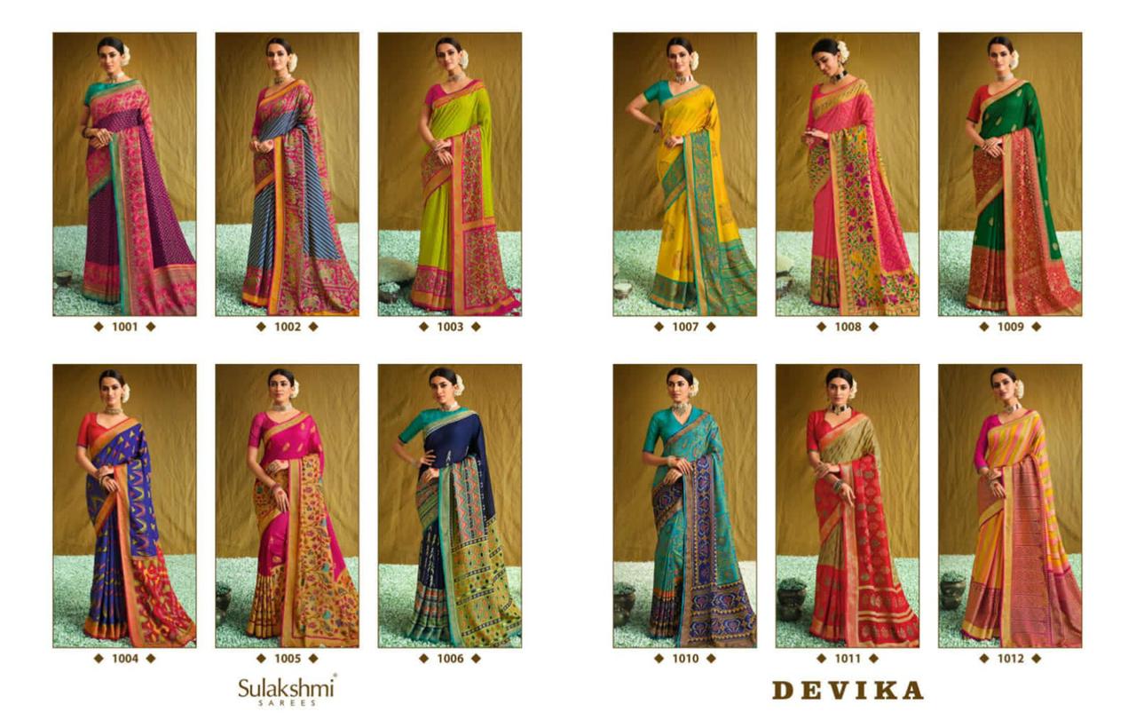 Buy Online Devika By Sulakshmi Saree Wholesale Suppliers And Dealer From India 12 Pcs of Full Catalogue at Wholesale Price. Looking for Devika By Sulakshmi Saree Wholesale Suppliers And Dealer From India Full Catalouge at Best Price? Buy Now Devika By Sulakshmi Saree Wholesale Suppliers And Dealer From India at Wholesale Rate of Rs 16200 with Total 12 Pcs from authroized dealer and supplier of SULAKSHMI Brand. Cost of Each piece is just only Rs 1350 which is very low and affordable price to resale the product in your retail store ,This is Surat based Wholesale Supplier & Dealer of SULAKSHMI Brand. Click on Brand name to Know more about SULAKSHMI Brand's products.Call or Whatsapp on 9898838984 for booking or enquiry