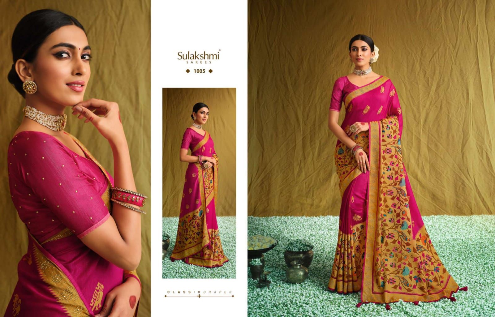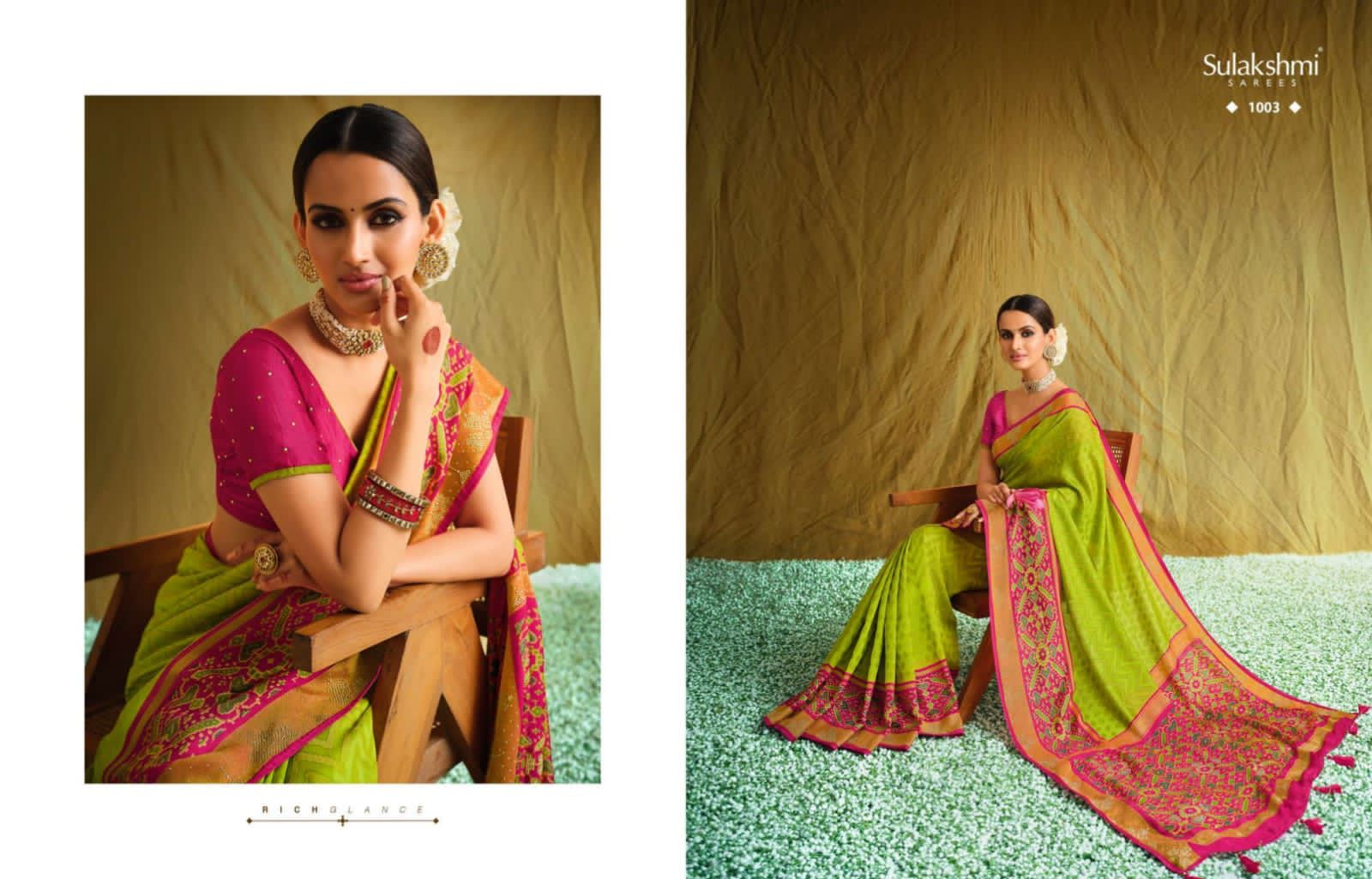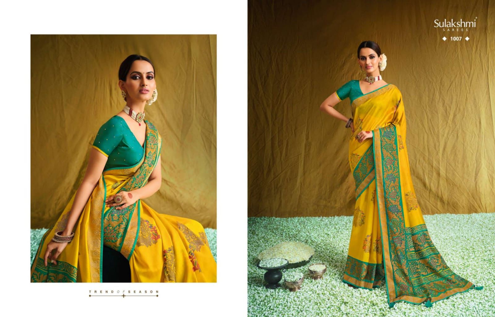 Buy Online Devika By Sulakshmi Saree Wholesale Suppliers And Dealer From India 12 Pcs of Full Catalogue at Wholesale Price. Looking for Devika By Sulakshmi Saree Wholesale Suppliers And Dealer From India Full Catalouge at Best Price? Buy Now Devika By Sulakshmi Saree Wholesale Suppliers And Dealer From India at Wholesale Rate of Rs 16200 with Total 12 Pcs from authroized dealer and supplier of SULAKSHMI Brand. Cost of Each piece is just only Rs 1350 which is very low and affordable price to resale the product in your retail store ,This is Surat based Wholesale Supplier & Dealer of SULAKSHMI Brand. Click on Brand name to Know more about SULAKSHMI Brand's products.Call or Whatsapp on 9898838984 for booking or enquiry