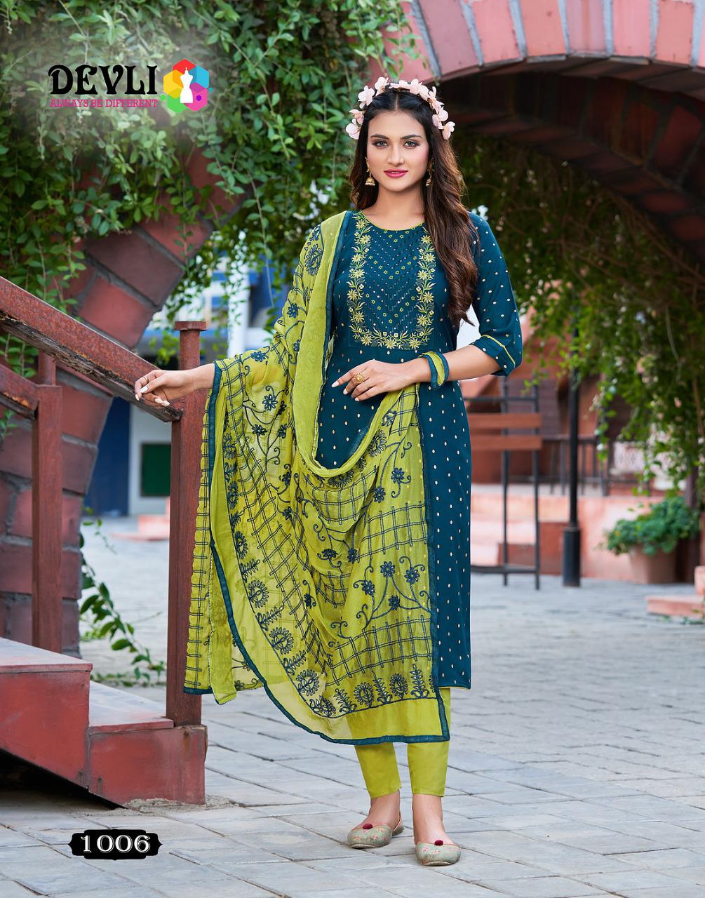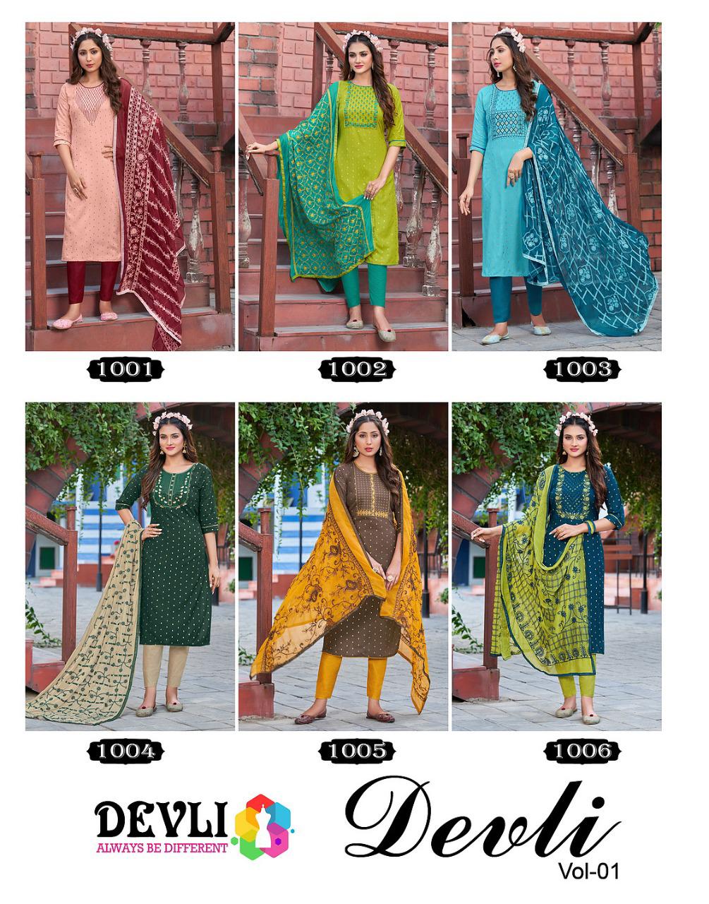 Buy Online Devli Vol 1 Kurti Pent And Duppta By Devli Wholesaler Supplier From Surat 6 Pcs of Full Catalogue at Wholesale Price. Looking for Devli Vol 1 Kurti Pent And Duppta By Devli Wholesaler Supplier From Surat Full Catalouge at Best Price? Buy Now Devli Vol 1 Kurti Pent And Duppta By Devli Wholesaler Supplier From Surat at Wholesale Rate of Rs 4794 with Total 6 Pcs from authroized dealer and supplier of Brand. Cost of Each piece is just only Rs 799 which is very low and affordable price to resale the product in your retail store ,This is Surat based Wholesale Supplier & Dealer of Brand. Click on Brand name to Know more about Brand's products.Call or Whatsapp on 9898838984 for booking or enquiry