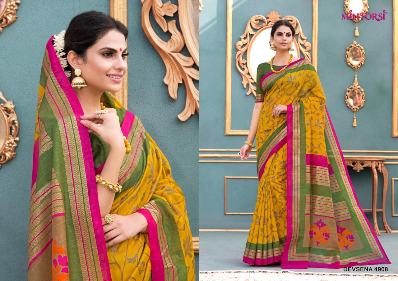 Buy Online Devsena Vol 1 By Mintorsi Sarees Set And Single Wholesale Supplier And Dealer Surat 10 Pcs of Full Catalogue at Wholesale Price. Looking for Devsena Vol 1 By Mintorsi Sarees Set And Single Wholesale Supplier And Dealer Surat Full Catalouge at Best Price? Buy Now Devsena Vol 1 By Mintorsi Sarees Set And Single Wholesale Supplier And Dealer Surat at Wholesale Rate of Rs 6800 with Total 10 Pcs from authroized dealer and supplier of BRAND'S Brand. Cost of Each piece is just only Rs 680 which is very low and affordable price to resale the product in your retail store ,This is Surat based Wholesale Supplier & Dealer of BRAND'S Brand. Click on Brand name to Know more about BRAND'S Brand's products.Call or Whatsapp on 9898838984 for booking or enquiry