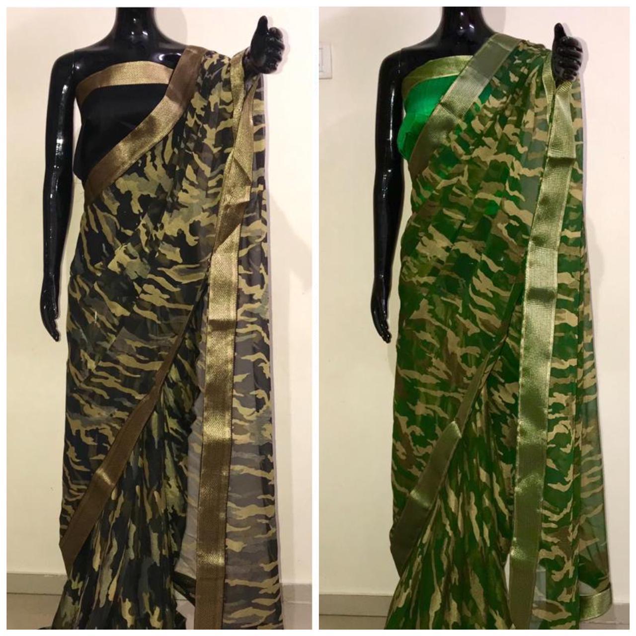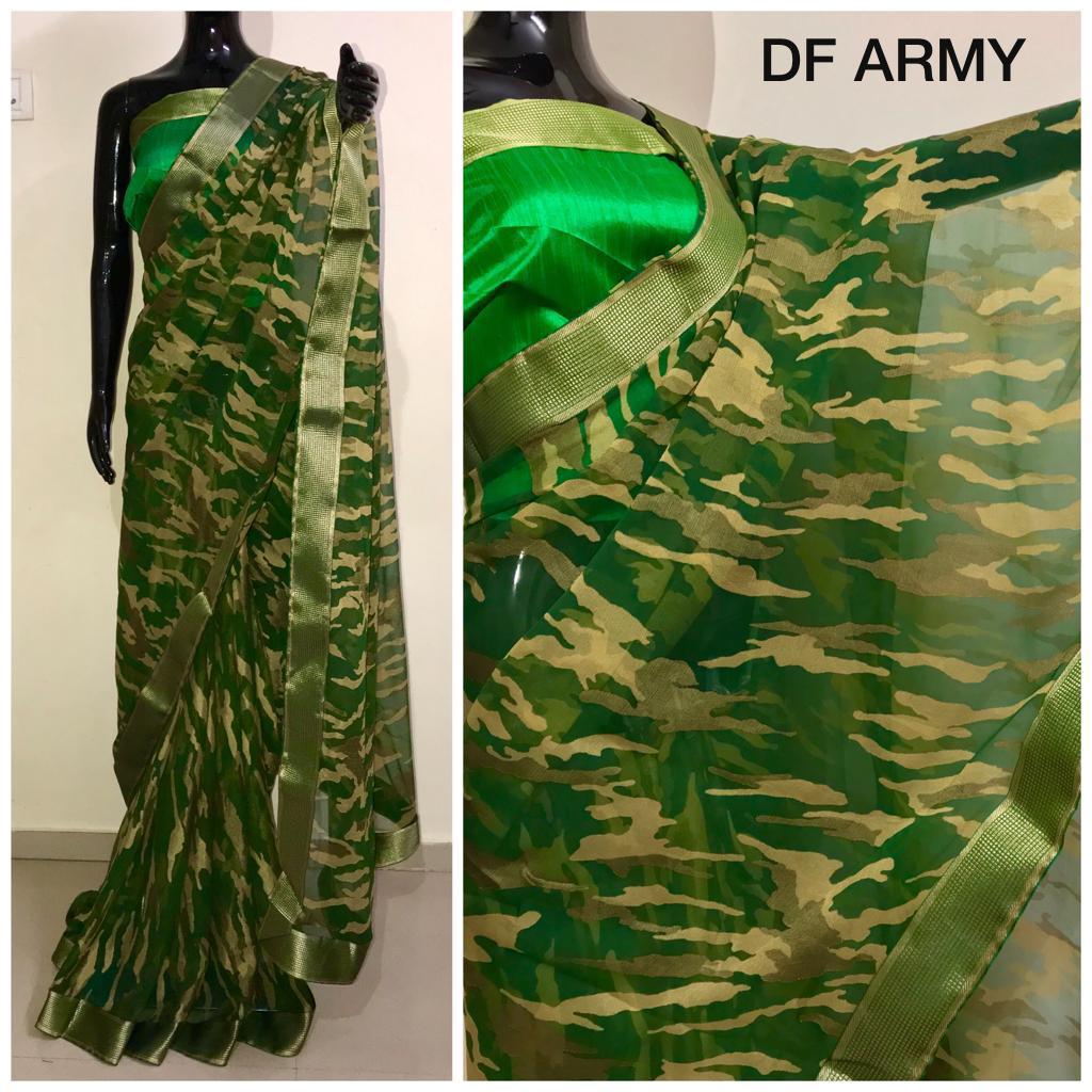Df Army Air Force Abhinandan Saree Fancy Brasso Militty Printed Saree Wholesaler Surat
