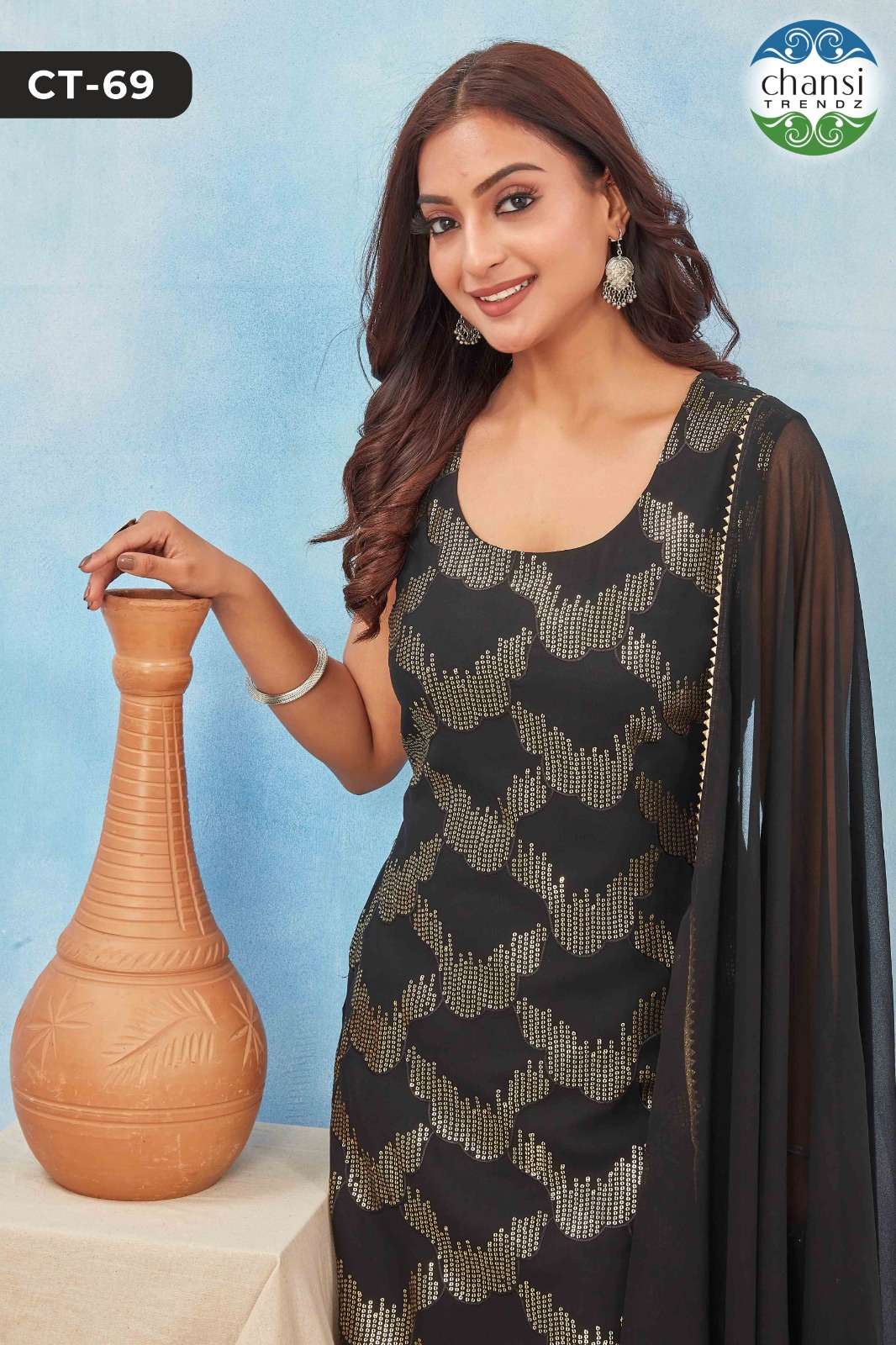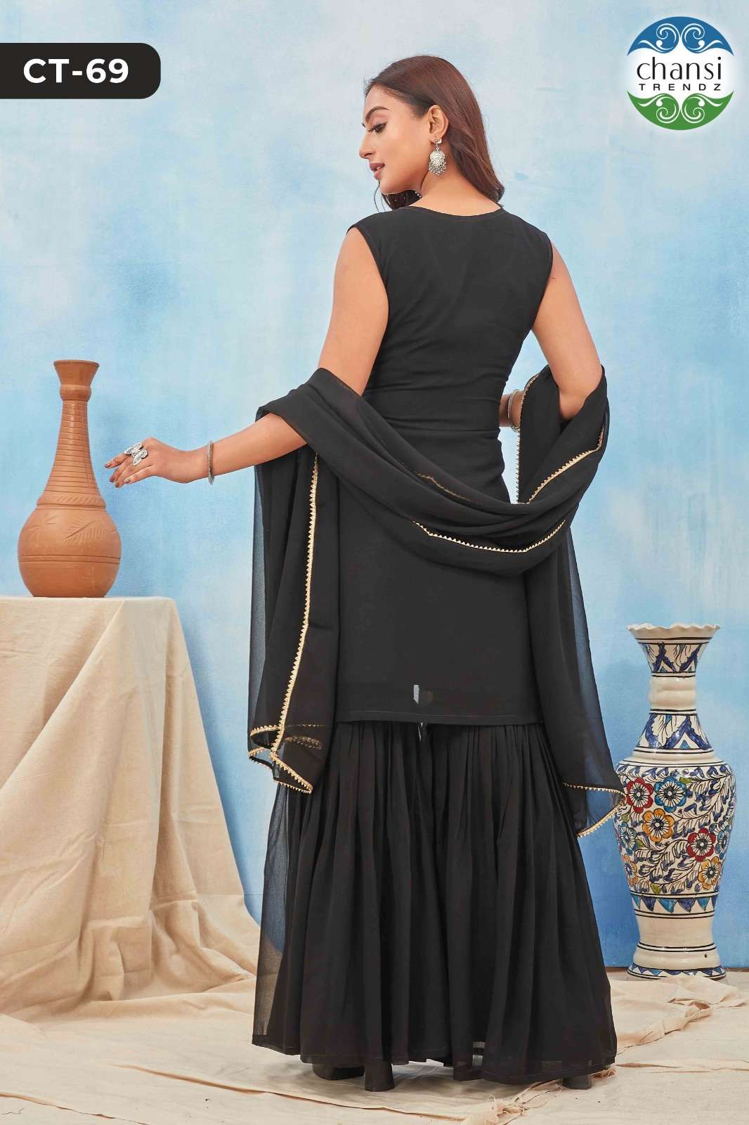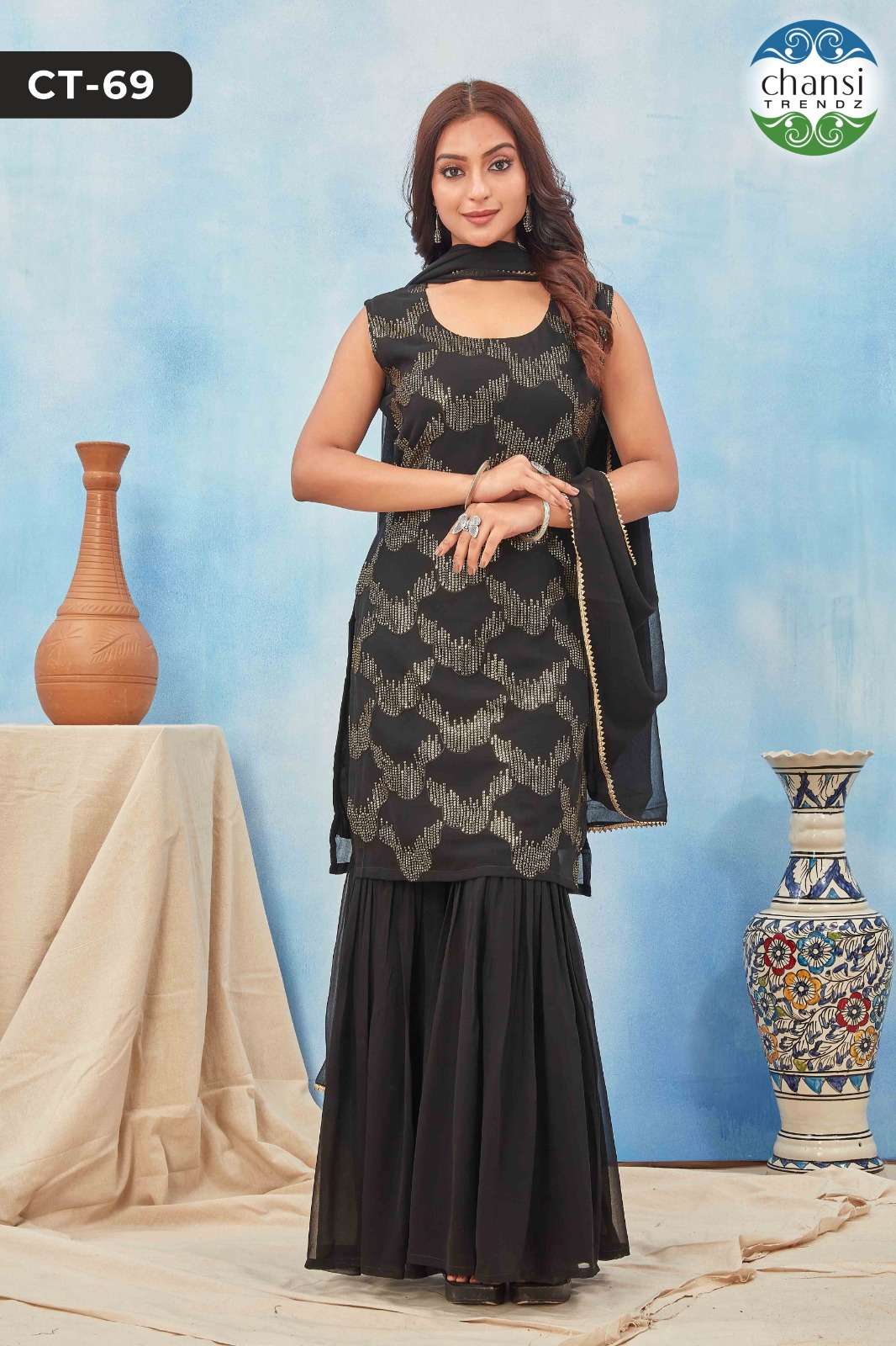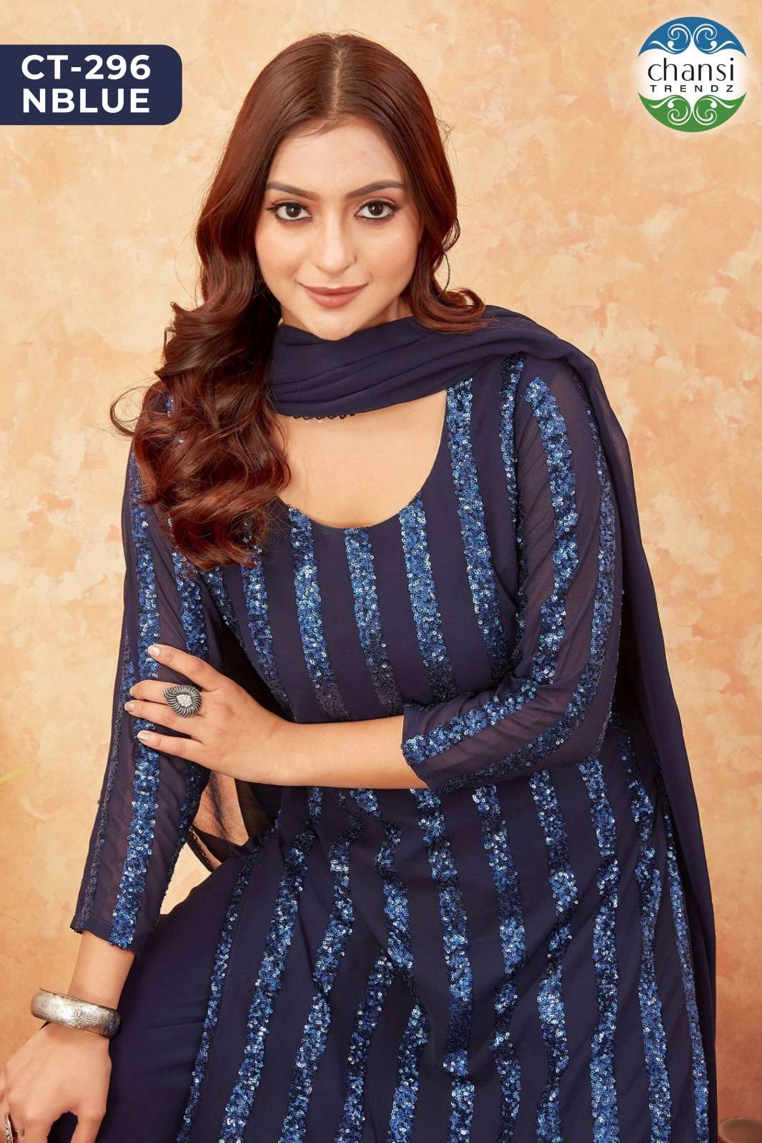 *Chansi Trendz* ®️ Presents *CATALOG NAME: DHAARANA* TOP FABRIC: GEORGETTE BOTTOM FABRIC: GEORGETTE DUPATTA FABRIC: GEORGETTE TOP TYPE: KURTA BOTTOM TYPE: PLAZZO CT-69: 1089+5%(GST) CT-73BLACK: 1079+5%(GST) CT-270PBLUE: 1379+5%(GST) CT-296NBLUE: 1599+5%(GST) *NO OF DESIGNS: 4-PCS* *SIZES: S, M, L, XL, XXL* STOCK: READY TO DISPATCH |