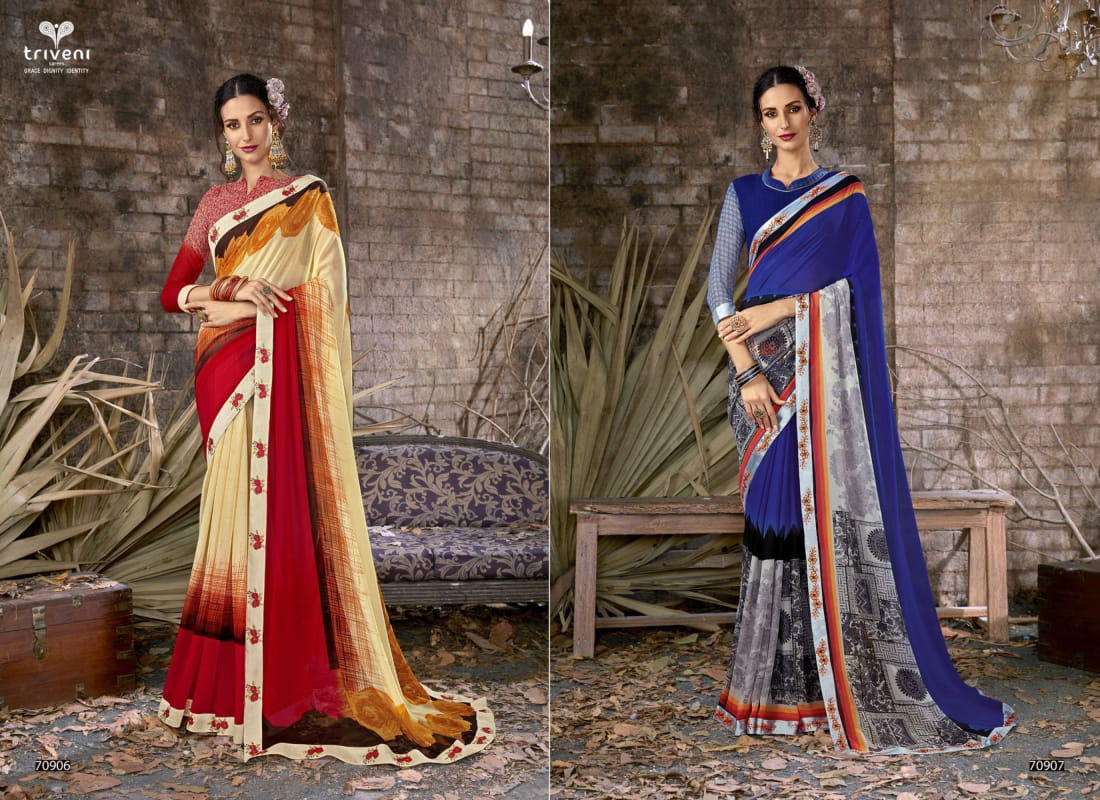 Dhadak Vol 2 By Triveni 70901 Series Fancy 60 Grm Printed Saree Collection Wholesaler Surat