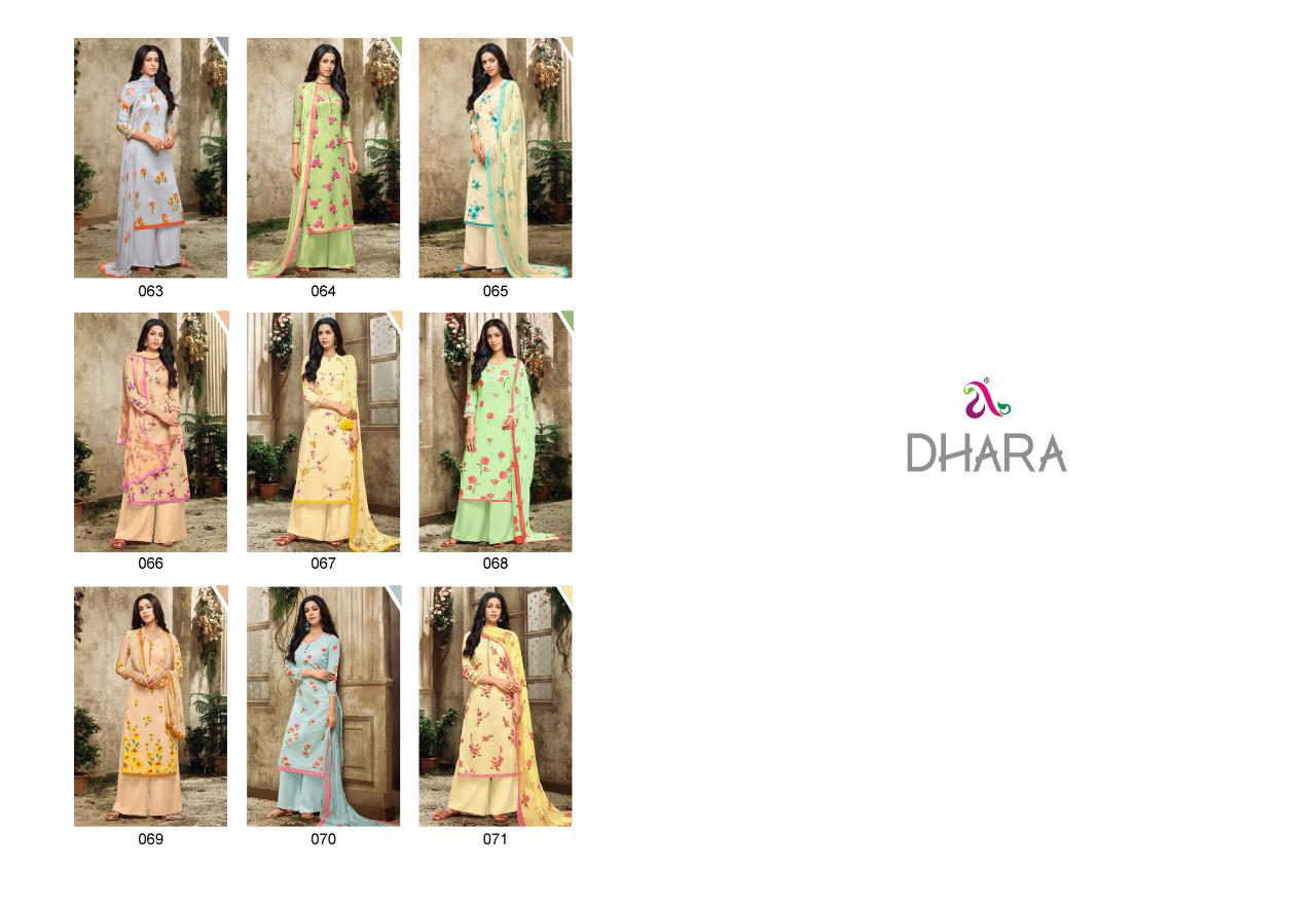 *CATALOGUE NAME* *DHARA* ? *Top: pure jam silk print(2.5 mts)* ? *Bottom : semi lawn (2.7mts)* ? *Dup: chiffon print (2.25 mts)* ? *Designes:9* *Price:579/-* *("Exclusive pouch and bag packing")* |