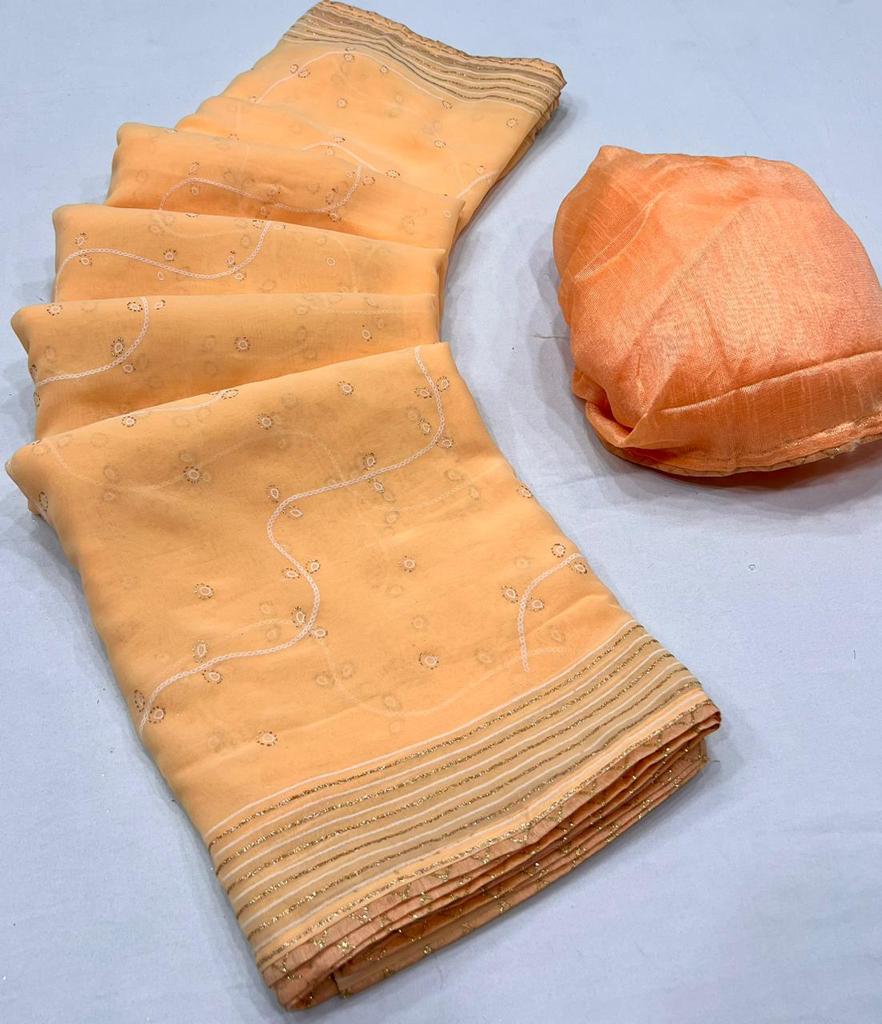 Buy Online Dharati By Kashvi Creation Georgette Fancy Saree 9 Pcs of Full Catalogue at Wholesale Price. Looking for Dharati By Kashvi Creation Georgette Fancy Saree Full Catalouge at Best Price? Buy Now Dharati By Kashvi Creation Georgette Fancy Saree at Wholesale Rate of Rs 4455 with Total 9 Pcs from authroized dealer and supplier of Brand. Cost of Each piece is just only Rs 495 which is very low and affordable price to resale the product in your retail store ,This is Surat based Wholesale Supplier & Dealer of Brand. Click on Brand name to Know more about Brand's products.Call or Whatsapp on 9898838984 for booking or enquiry