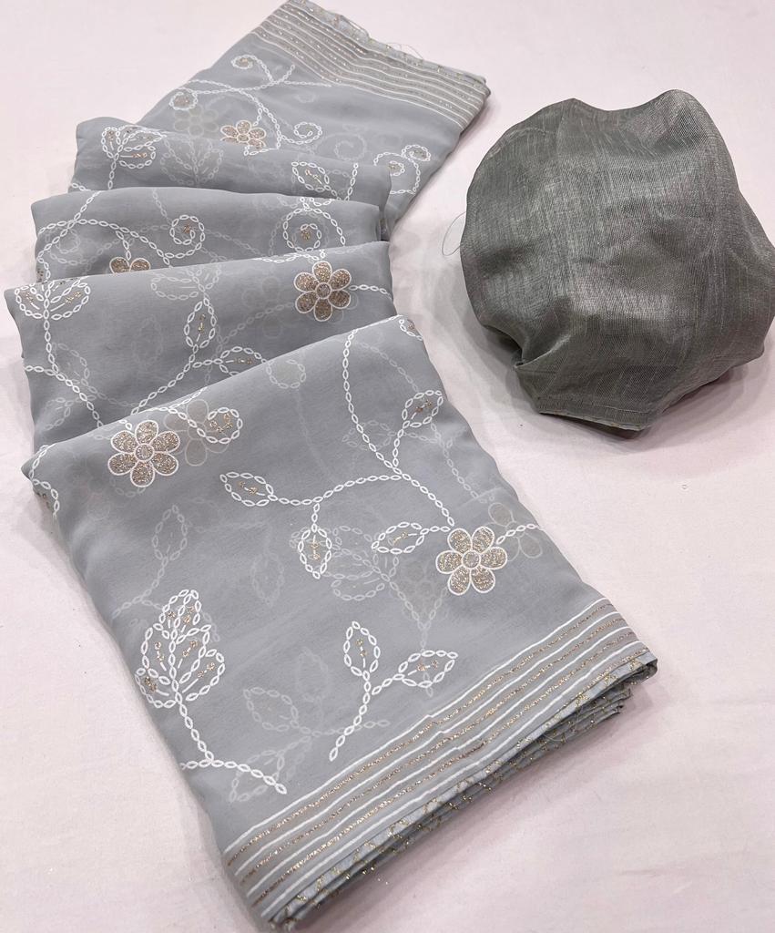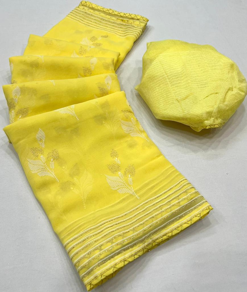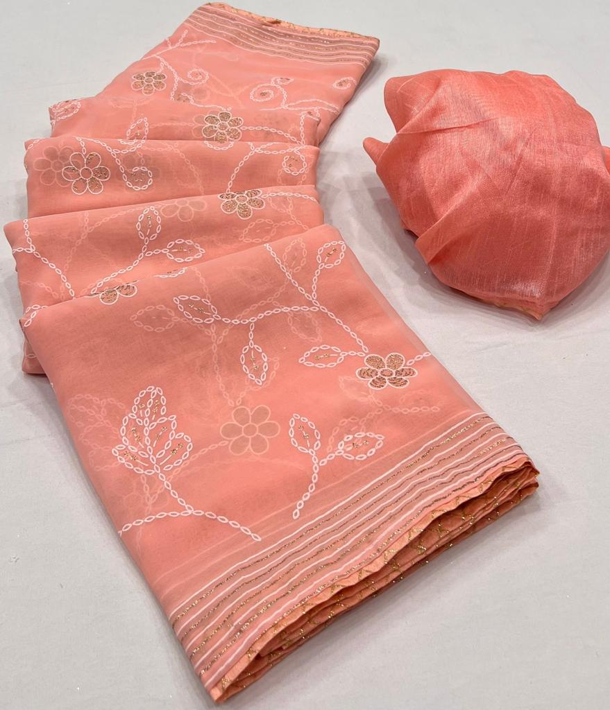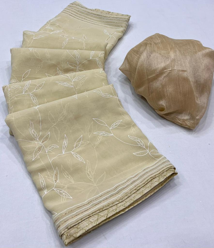 * New Cataloge Launch ? * ?? *Brand- LT Fabrics(Kashvi Creation )* ??**CATLOGUE* - * DHARATI* ??**Fabric * *- Georgette With Zari Print & Fancy Lace & Blouse ? * ?? *New Price:- 495/- Only Included Gst * Ship extra ?Book Fast ?Ready Stock *?We Believe In Quality ?* 100+single |