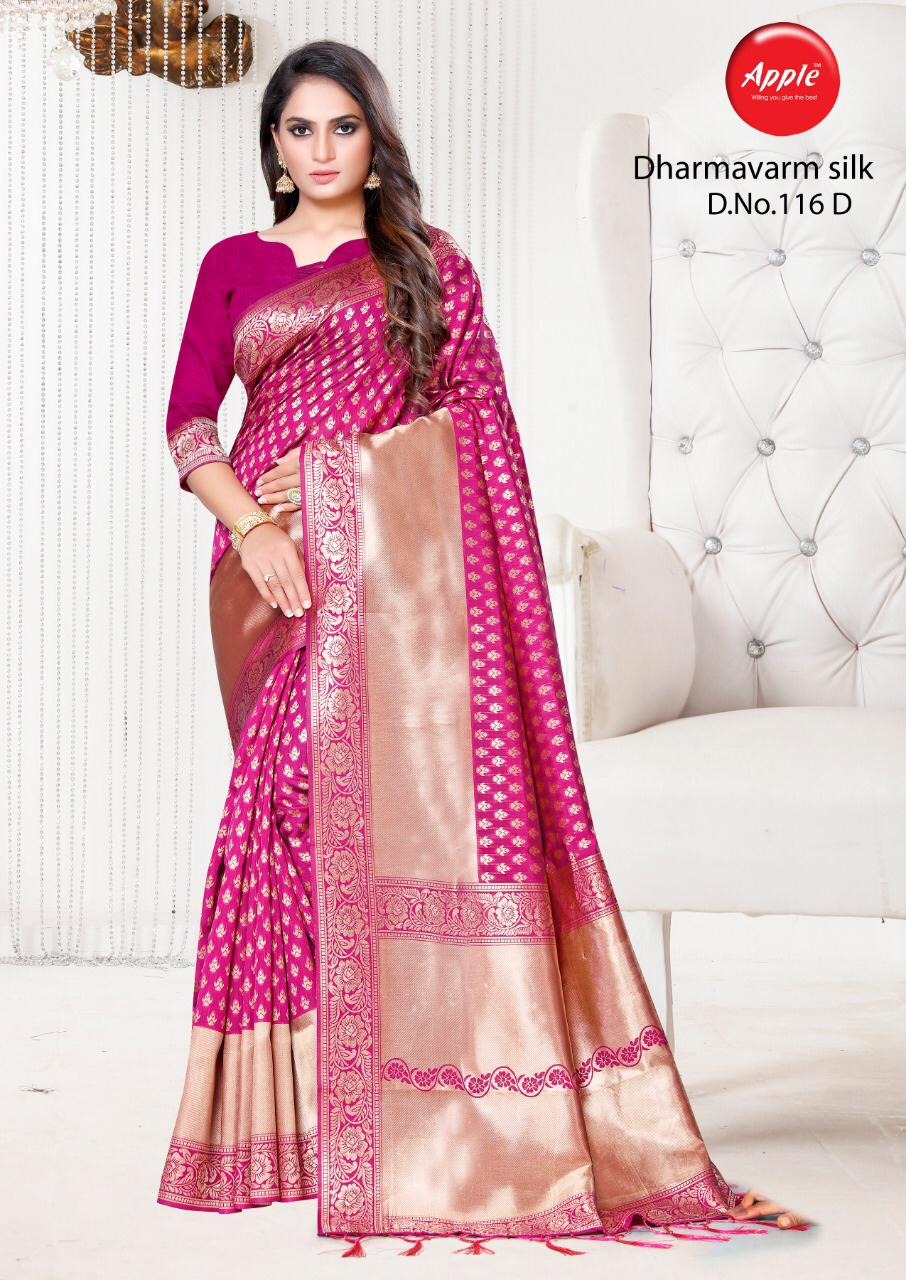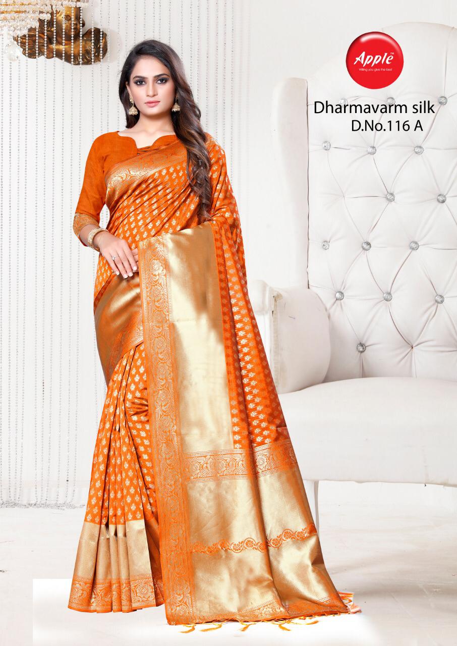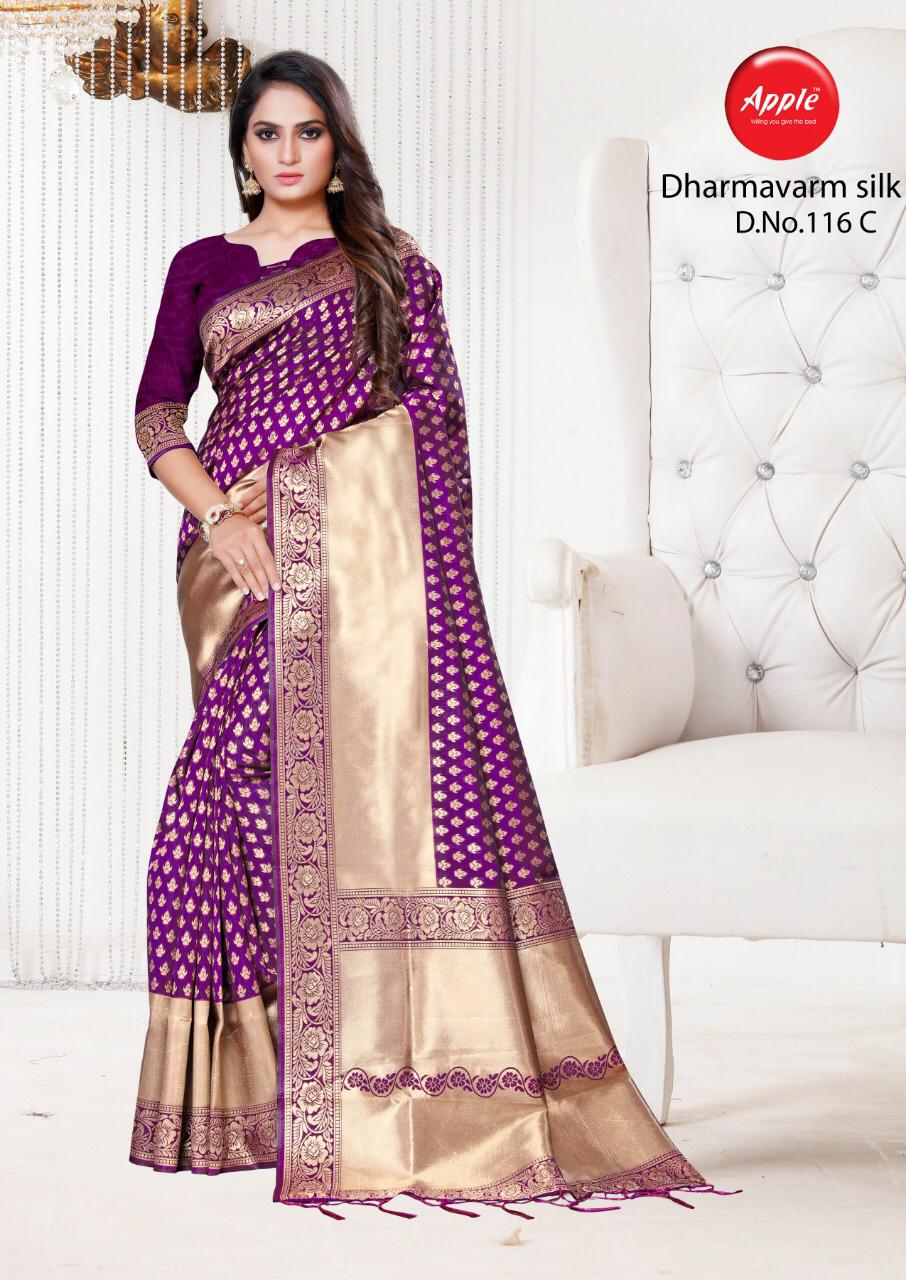Buy Online Dharmavaram Silk 116 Colours Poster By Apple Silk Sarees Wholesale Supplier Gujarat 6 Pcs of Full Catalogue at Wholesale Price. Looking for Dharmavaram Silk 116 Colours Poster By Apple Silk Sarees Wholesale Supplier Gujarat Full Catalouge at Best Price? Buy Now Dharmavaram Silk 116 Colours Poster By Apple Silk Sarees Wholesale Supplier Gujarat at Wholesale Rate of Rs 2970 with Total 6 Pcs from authroized dealer and supplier of APPLE Brand. Cost of Each piece is just only Rs 495 which is very low and affordable price to resale the product in your retail store ,This is Surat based Wholesale Supplier & Dealer of APPLE Brand. Click on Brand name to Know more about APPLE Brand's products.Call or Whatsapp on 9898838984 for booking or enquiry