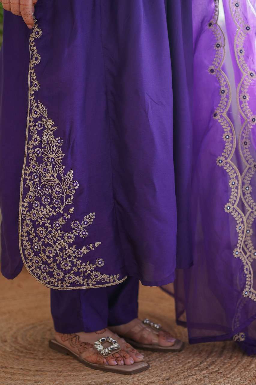 DHUSANDHYA Viscose Chanderi Purple kurti collection manufacturer surat