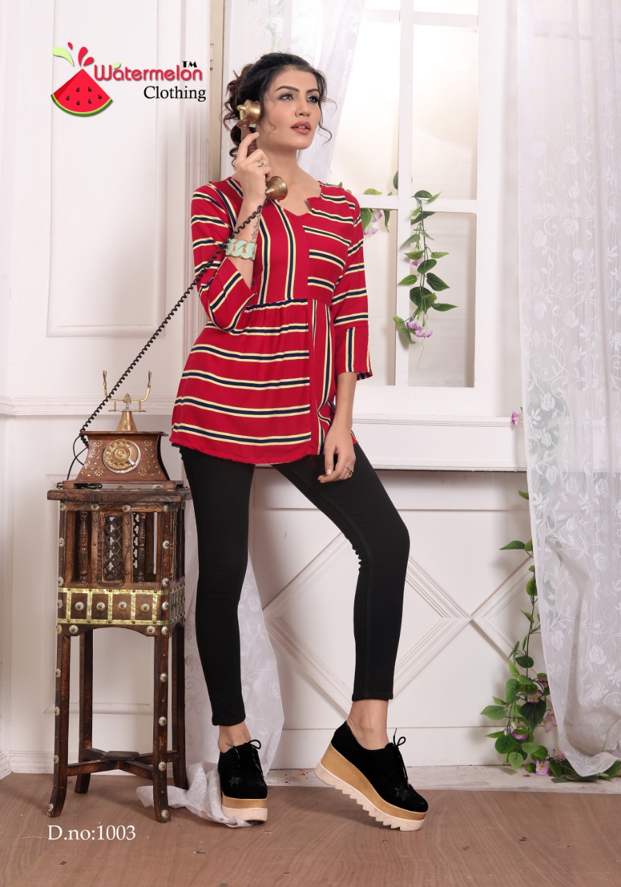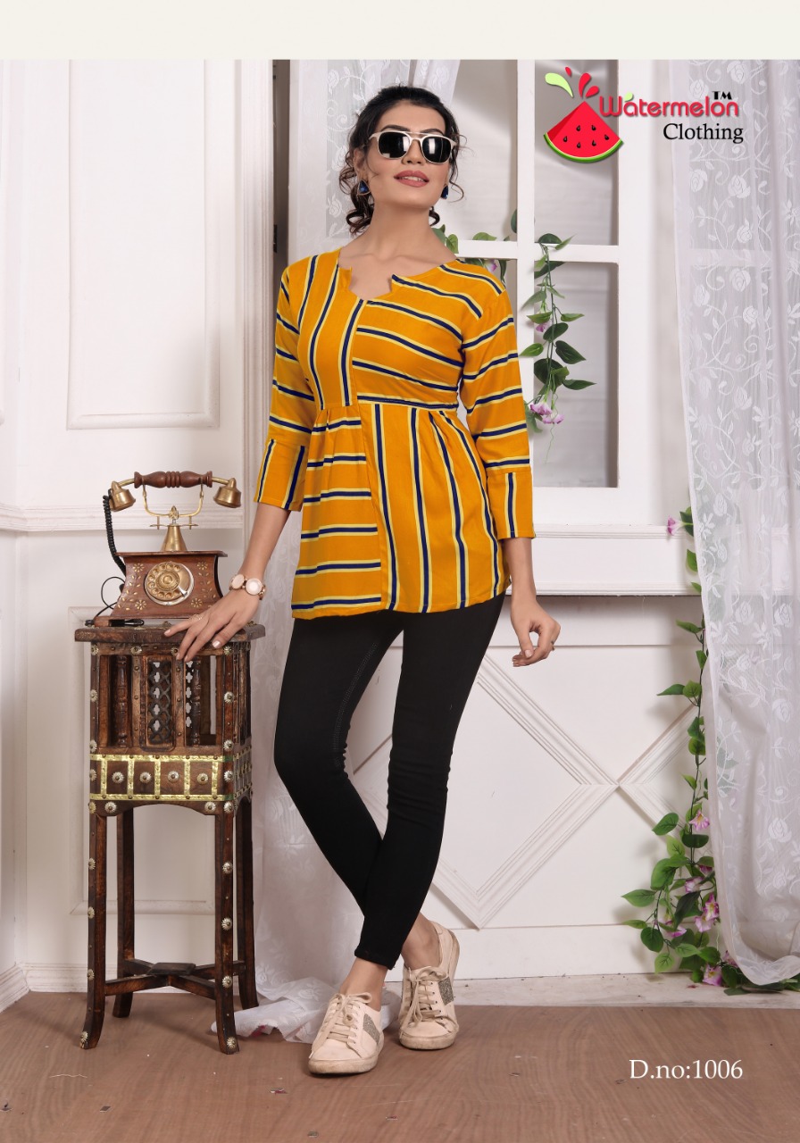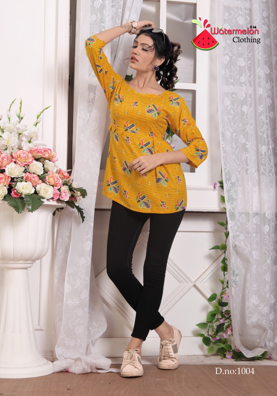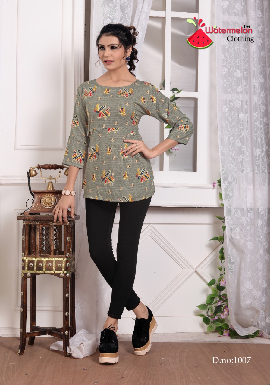 Buy Online Diamond Party 1 By Watermelon Reyon Tops Wholesale Supplier And Dealer Gujarat 10 Pcs of Full Catalogue at Wholesale Price. Looking for Diamond Party 1 By Watermelon Reyon Tops Wholesale Supplier And Dealer Gujarat Full Catalouge at Best Price? Buy Now Diamond Party 1 By Watermelon Reyon Tops Wholesale Supplier And Dealer Gujarat at Wholesale Rate of Rs 3300 with Total 10 Pcs from authroized dealer and supplier of WATERMELON Brand. Cost of Each piece is just only Rs 330 which is very low and affordable price to resale the product in your retail store ,This is Surat based Wholesale Supplier & Dealer of WATERMELON Brand. Click on Brand name to Know more about WATERMELON Brand's products.Call or Whatsapp on 9898838984 for booking or enquiry