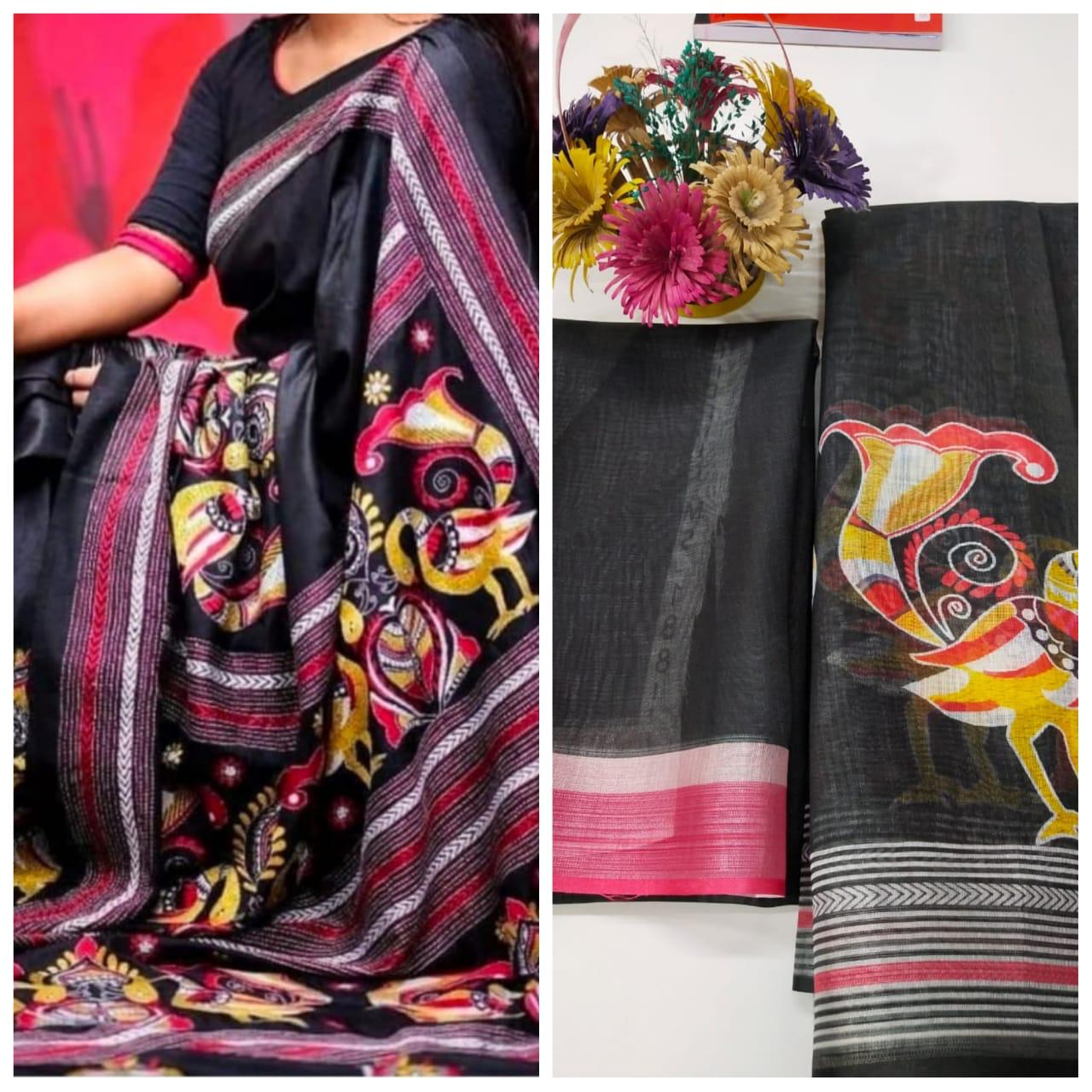 Digital Print Linen Saree By Nitya Nx Single And Set Stockiest And Supplier From Surat