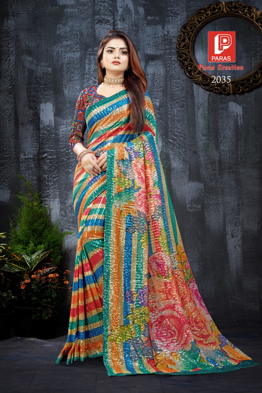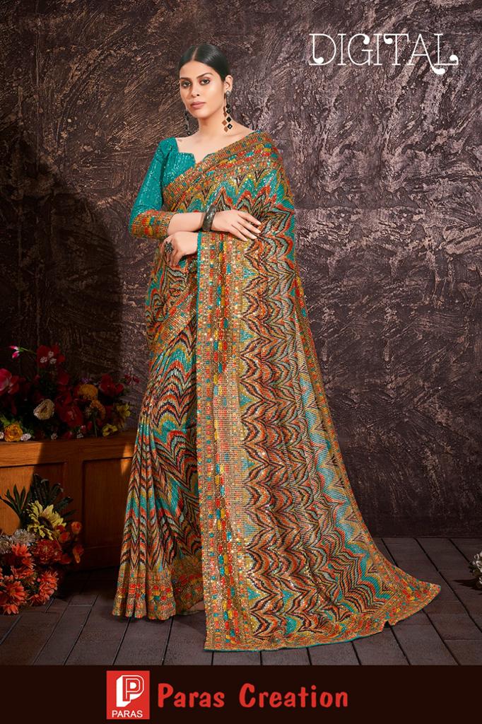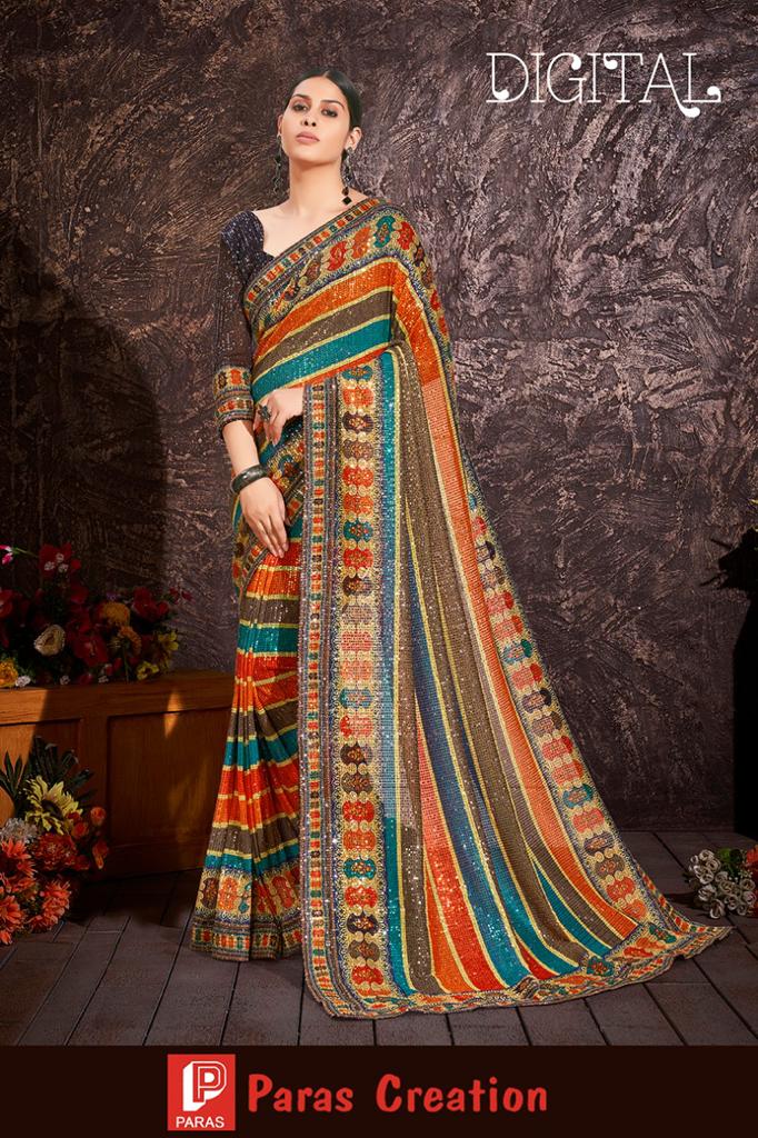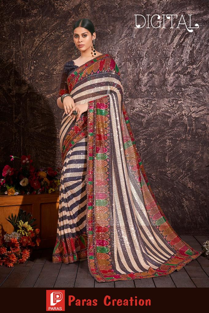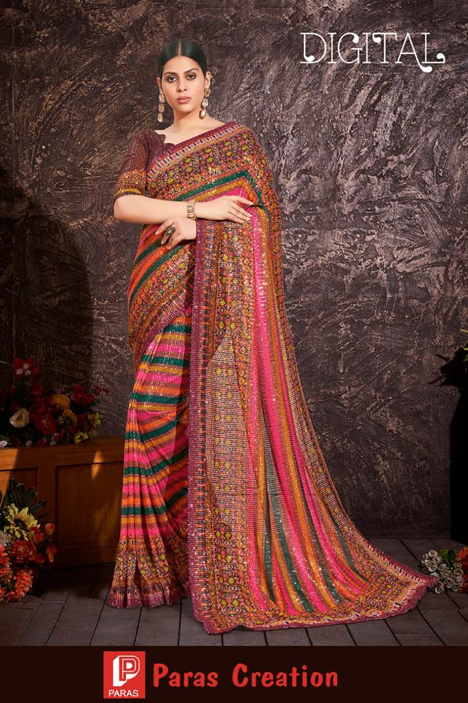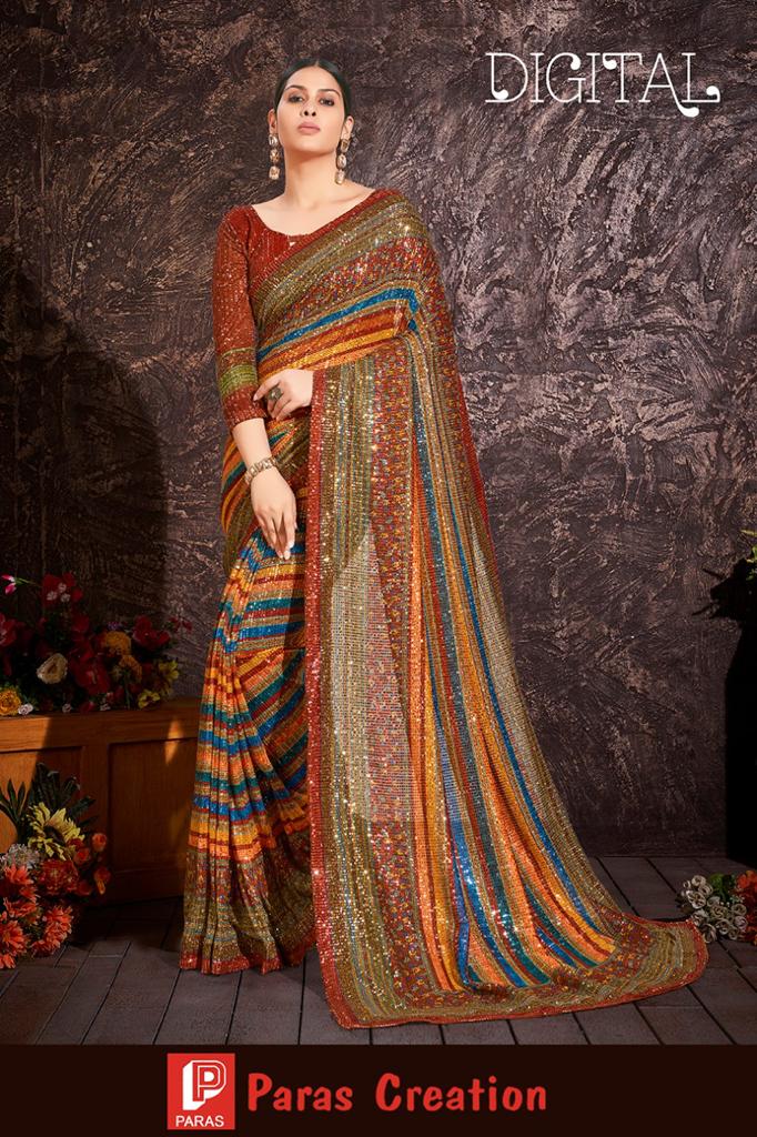 Digital Sequence Saree By Paras Creation Single And Set Stockiest And Supplier From Surat