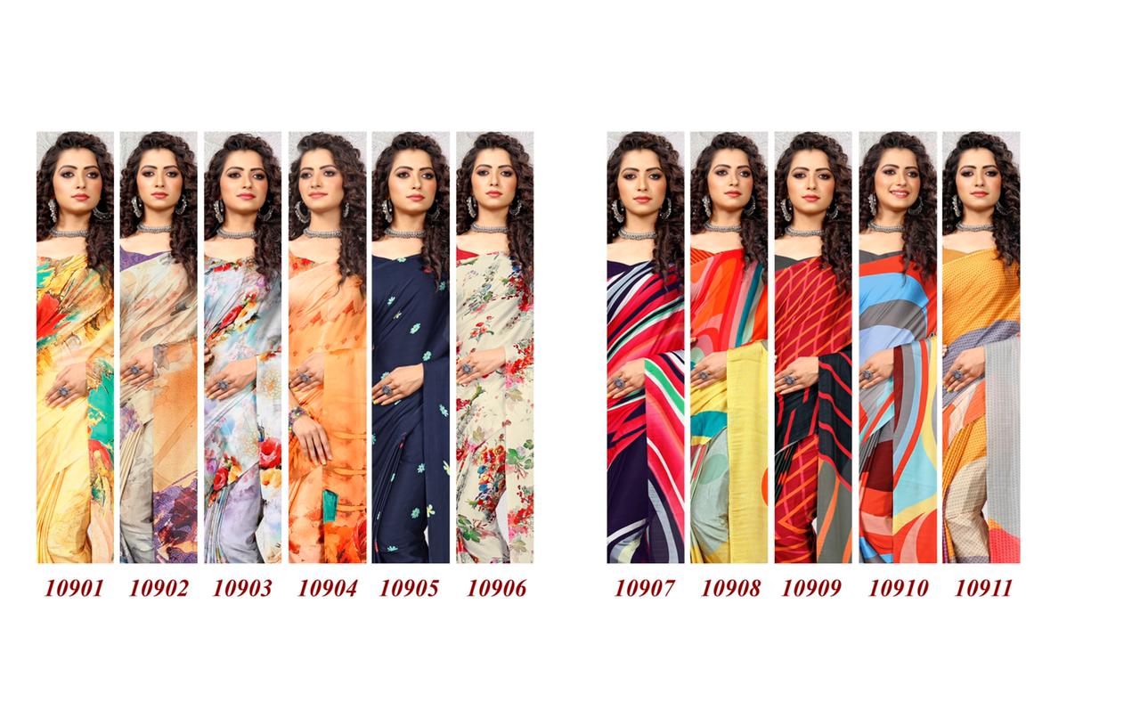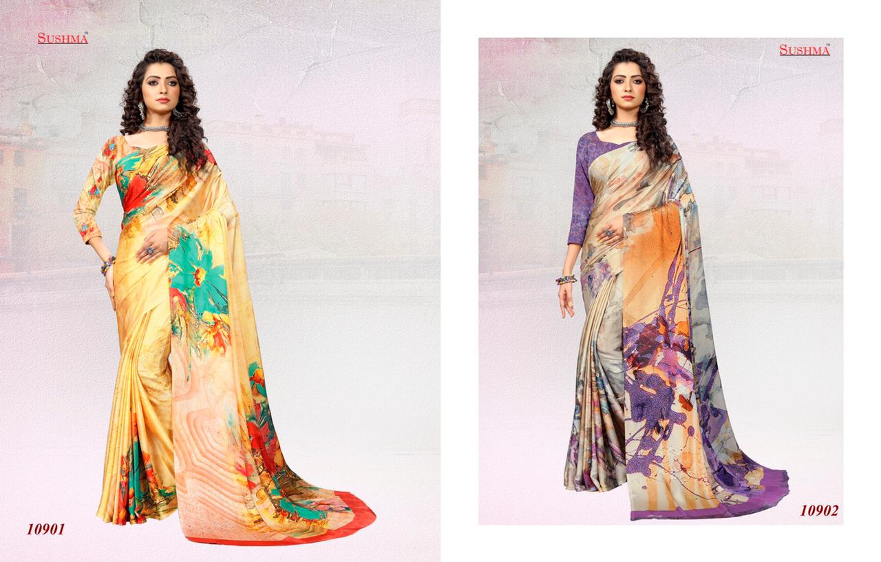 Brand - Sushama DIGITAL STYLES CATALOG SKY SATIN 990/- 6.30 MTRS. 11 SAREES Set to set |