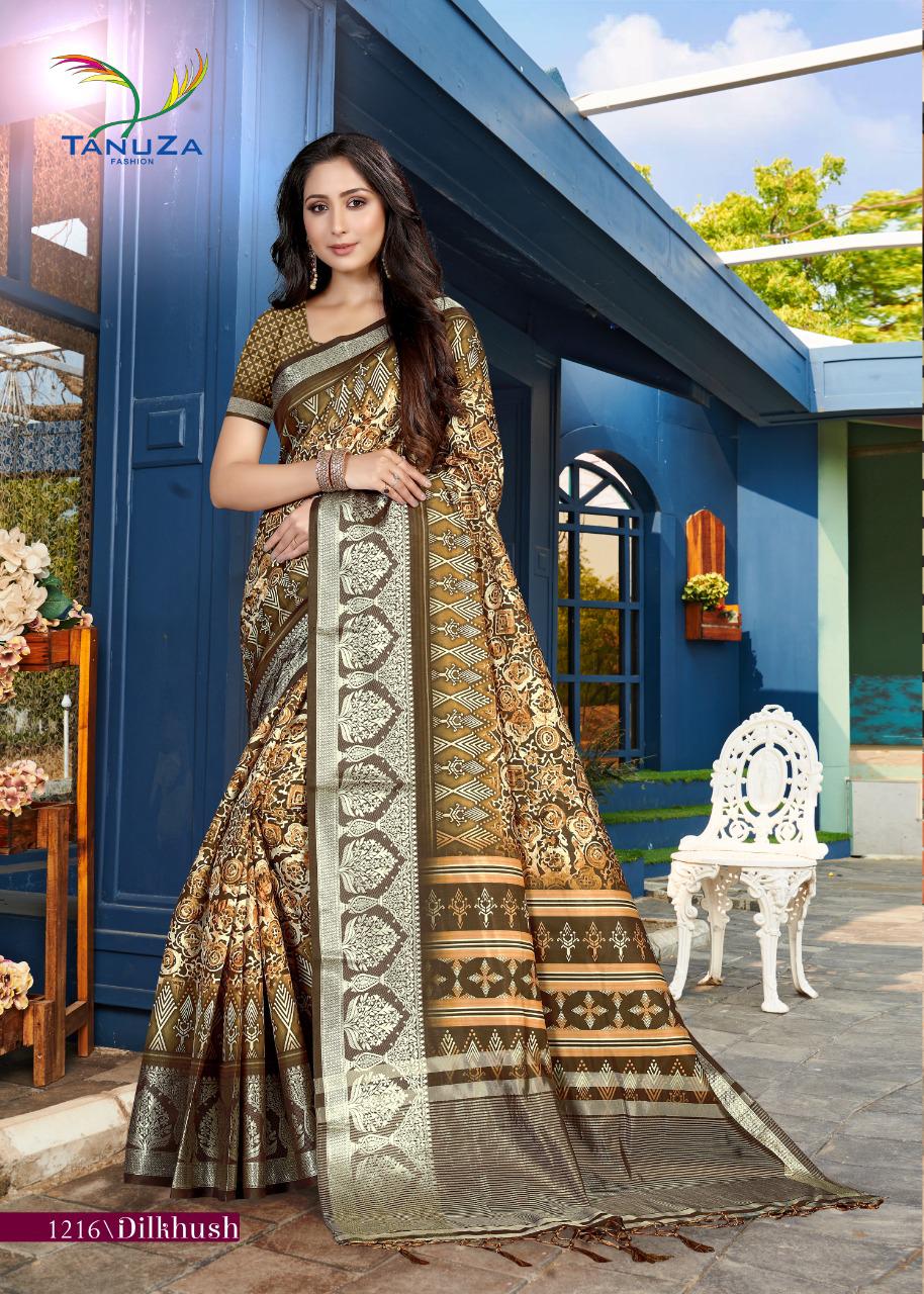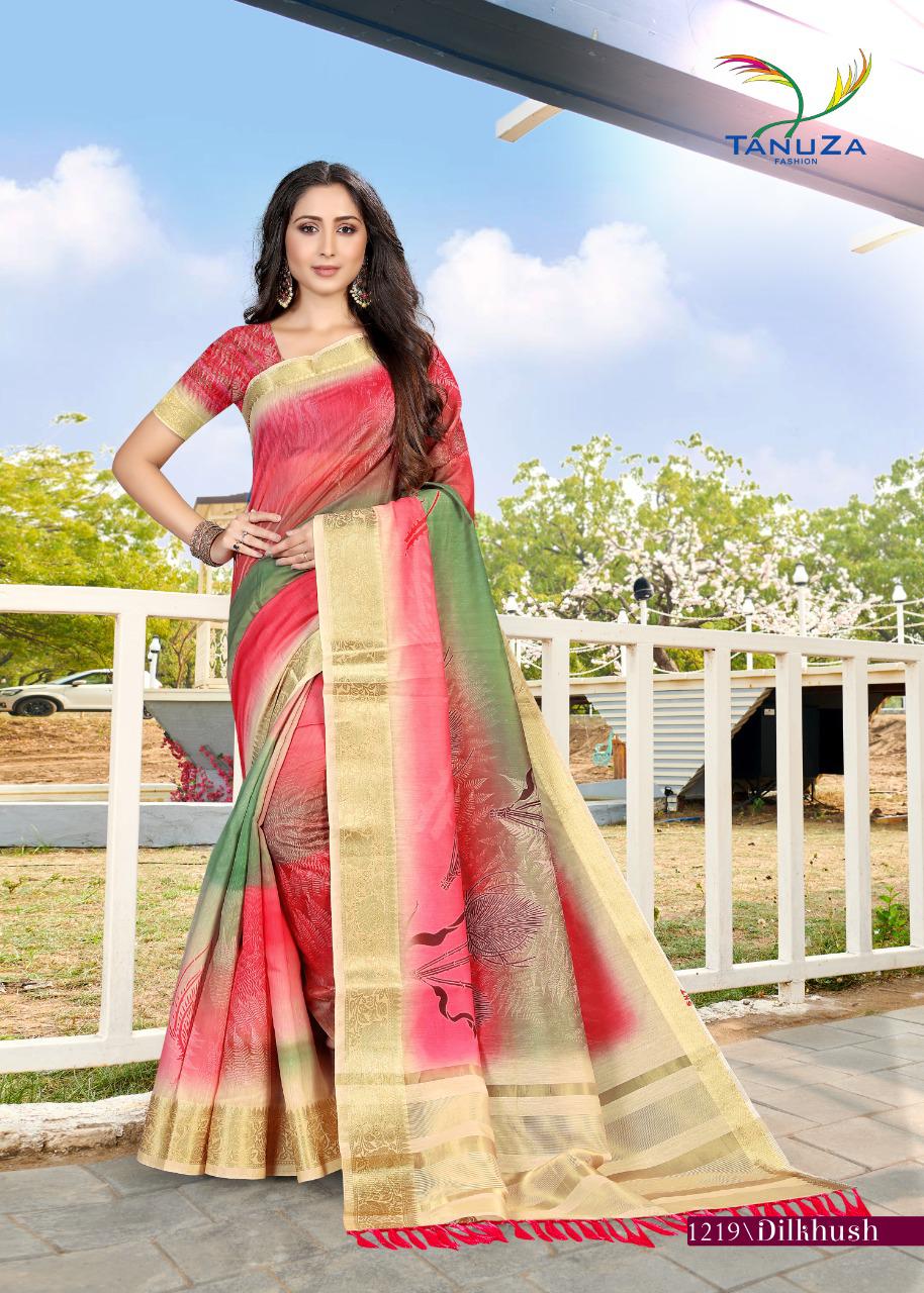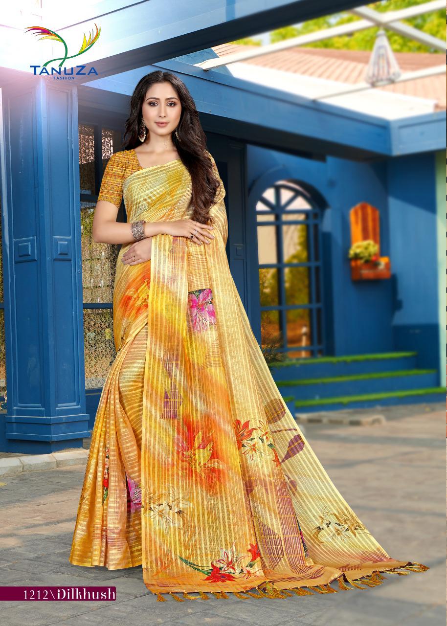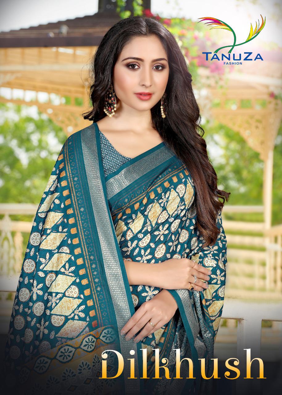 Brand -TANUZA FASHION Catalogue - DIL KHUSH Rate- 999 per pcs . Set to set. GST 5 Percent Extra Fabric - soft touch VISCOSE viving silk border & zari border digital print |