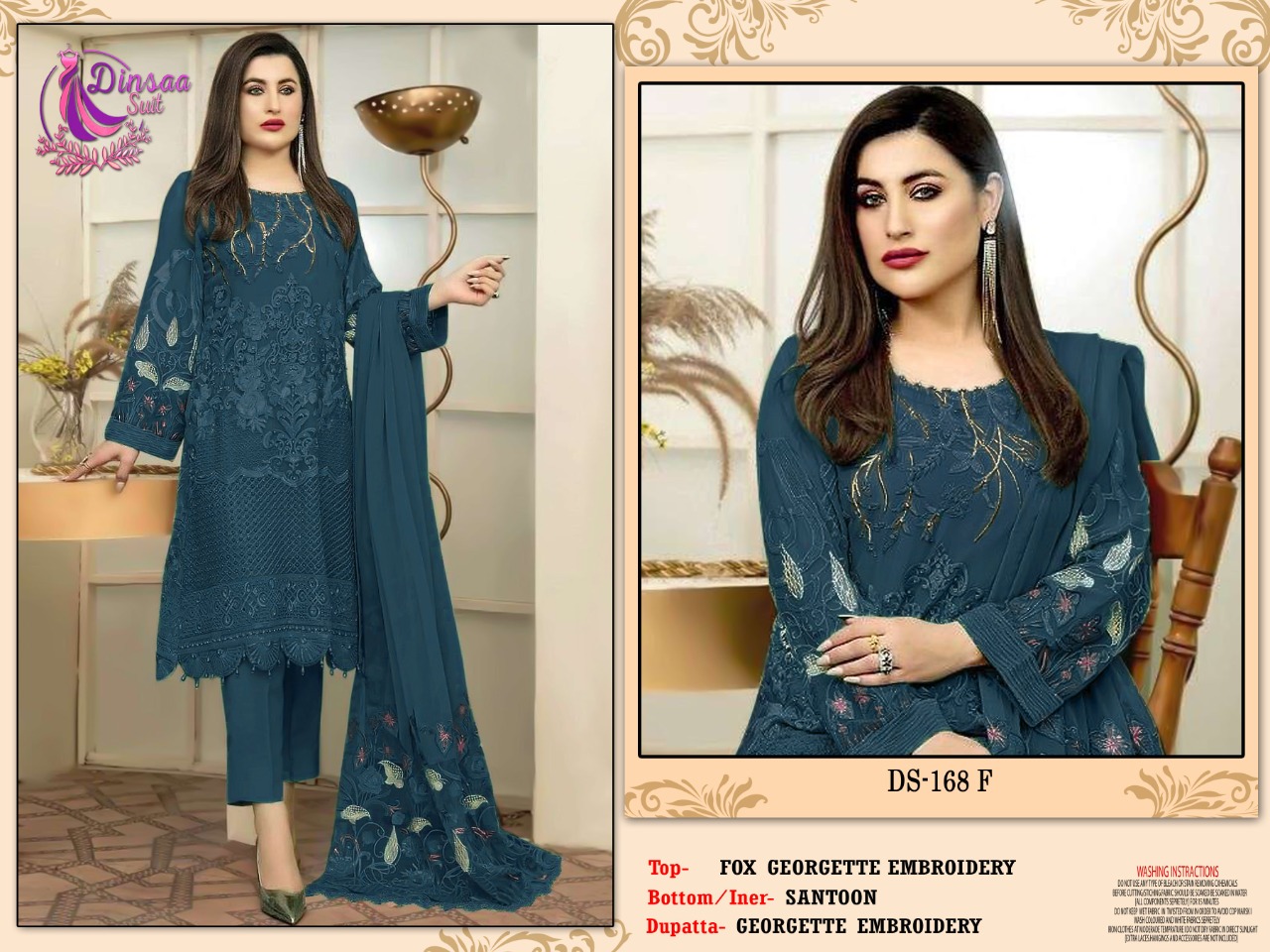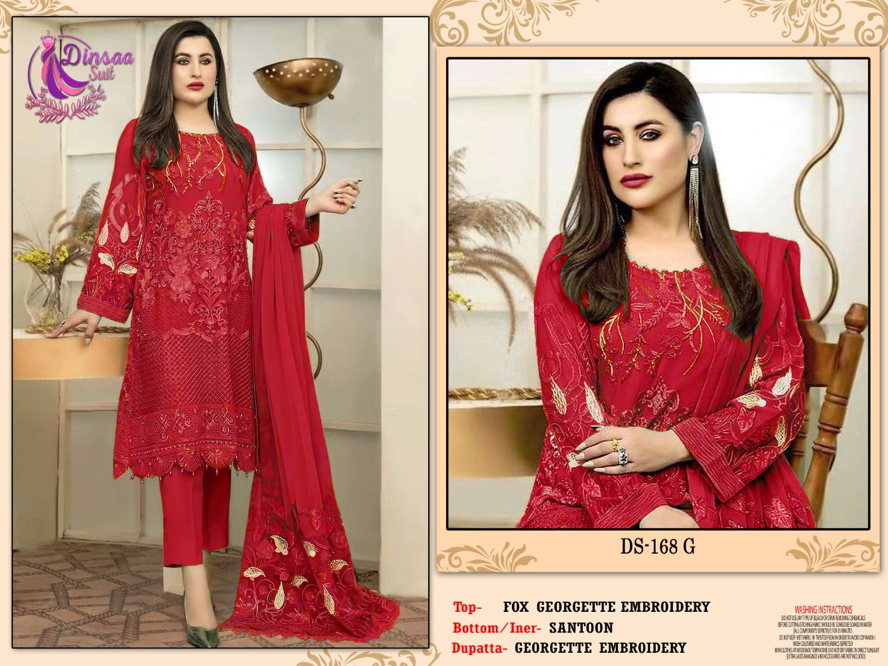 Dinsaa Suit New Design 168 New Color Georgette Suit Single Avilable Wholesaler Supplier Surat