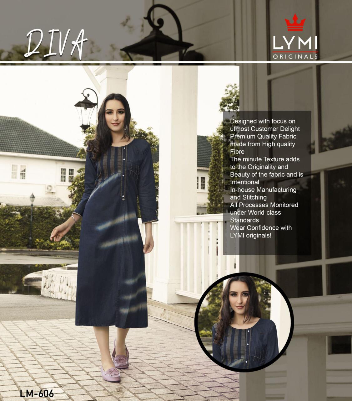 ? *LYMI (Kessi Fabrics Pvt. Ltd.)* has launched _Catalog name_ : *Diva* ? _Fabric Details_ ? ?Top :- Denim with Embroidery Work Kurtis ?Total Design :- 9 ?Rate:- Rs.525/- per Piece Set To Set. GST 5 Percent Extra ?Size;- M, L, XL, XXL ?Dispatching 5 to 6 days later ?Booking started from now... ?Order yours soon.... |