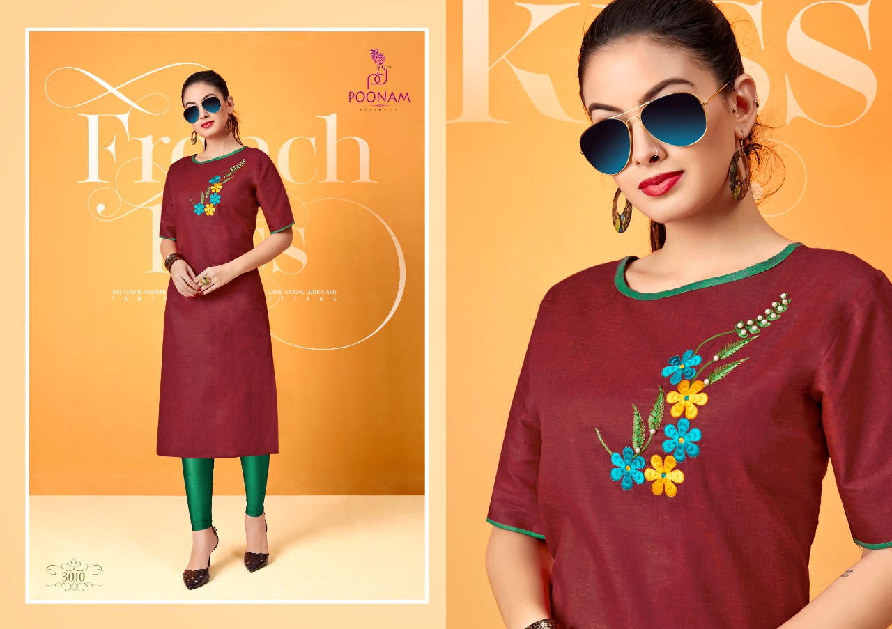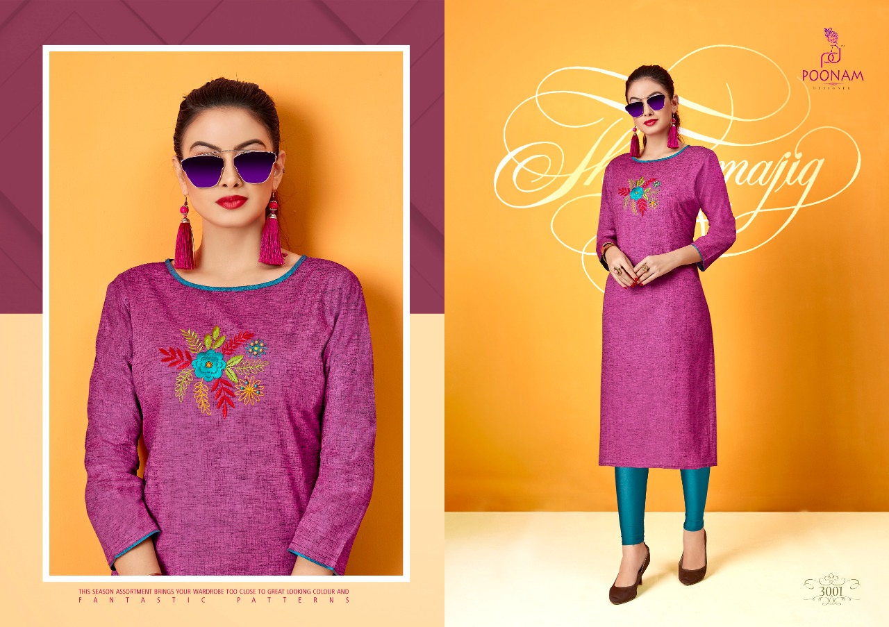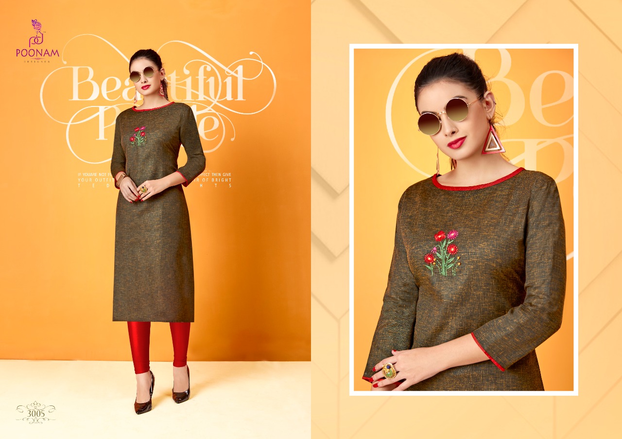 Diva Vol 3 By Poonam Designer 3001 Series Fancy Khadi Cotton Kurti Catlog Wholesaler Surat