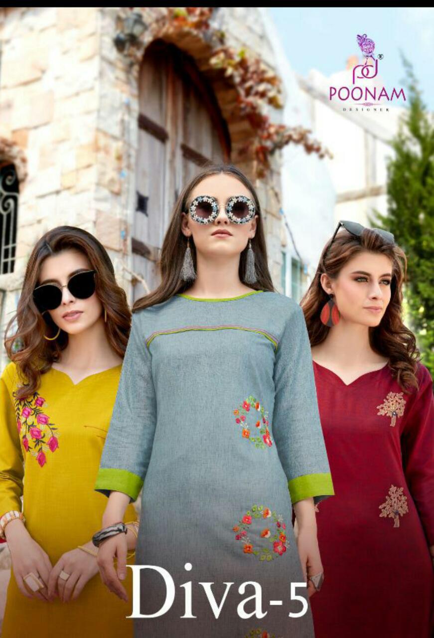 Diva Vol 5 By Poonam Designer Cotton Embroidered Designer Kurtis Wholesale Supplier And Dealer Gujarat