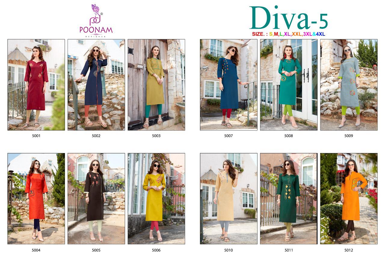 Diva Vol 5 By Poonam Designer Series 5001 To 5012 Heavy Cotton Kurtis Wholesale Supplier And Dealer Gujarat
