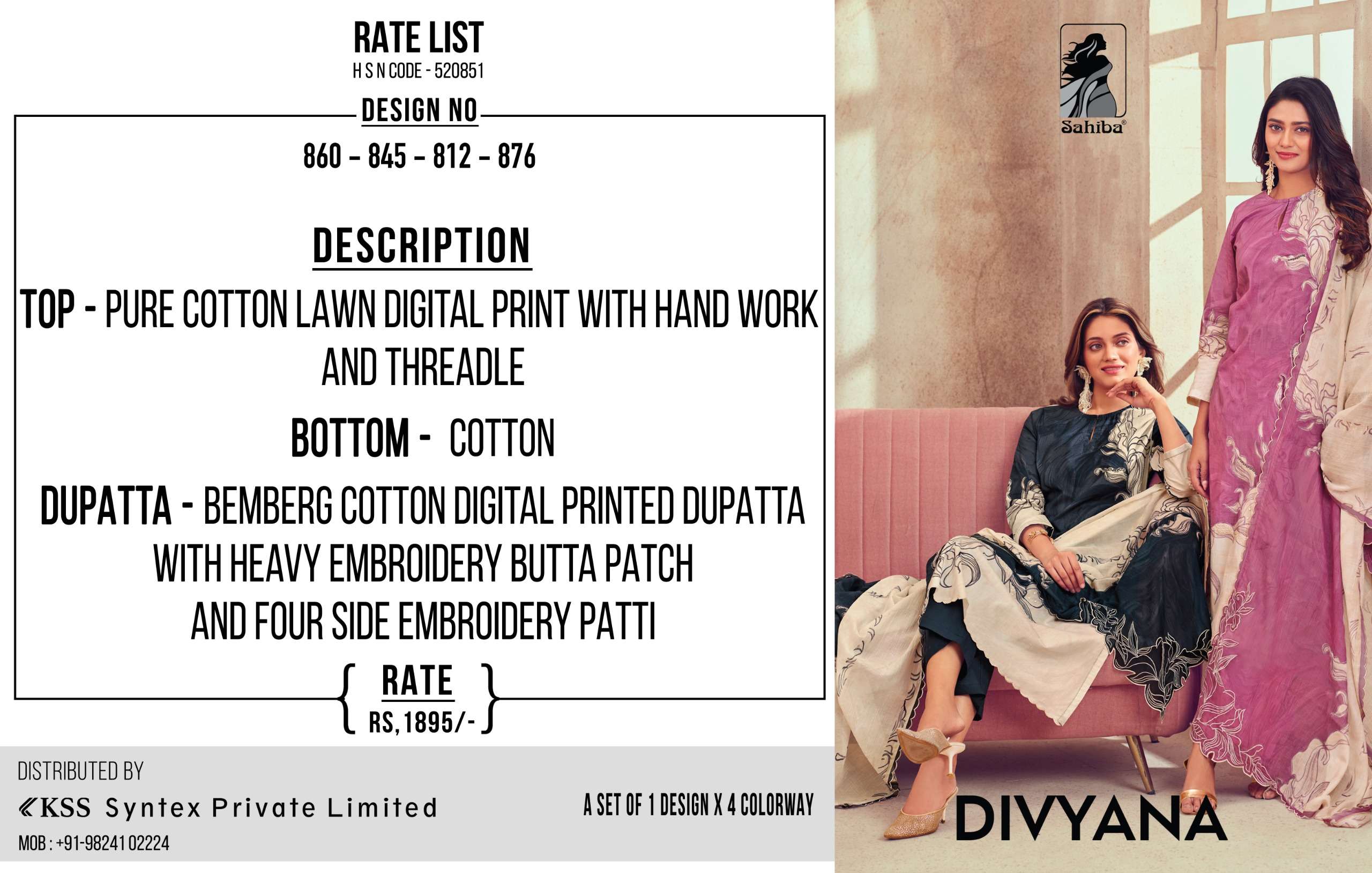 DIVYANA by SAHIBA PURE COTTON suit collection manufacturer surat