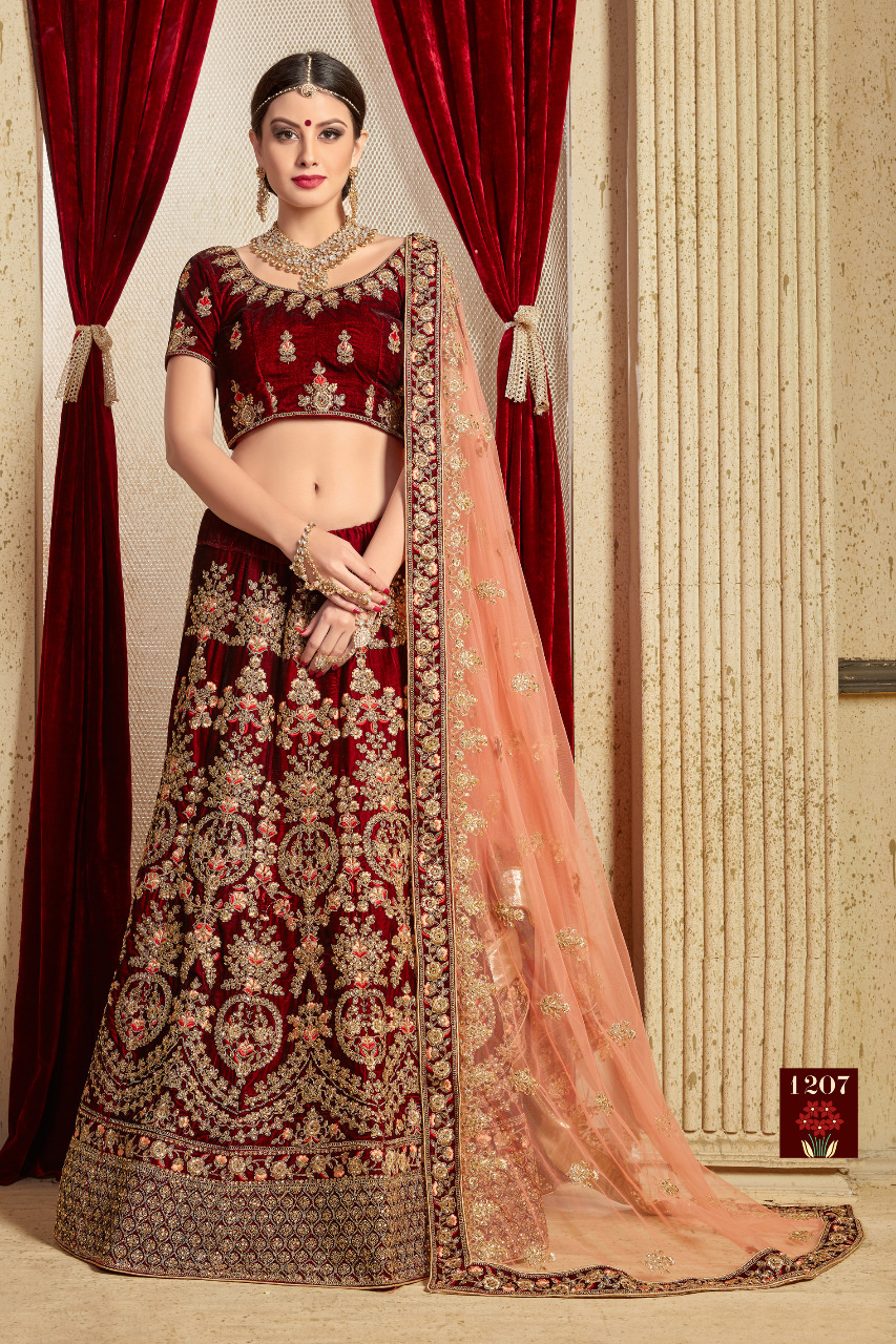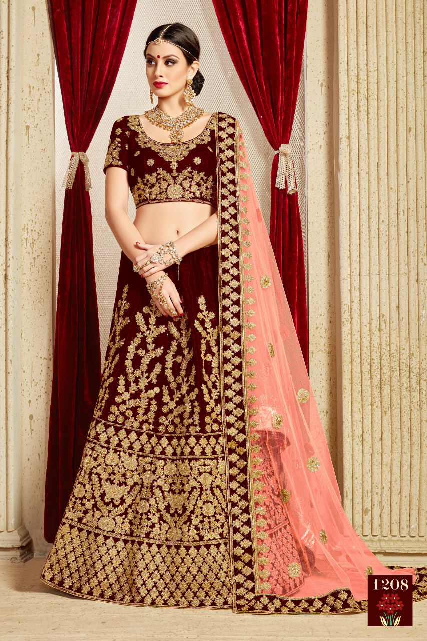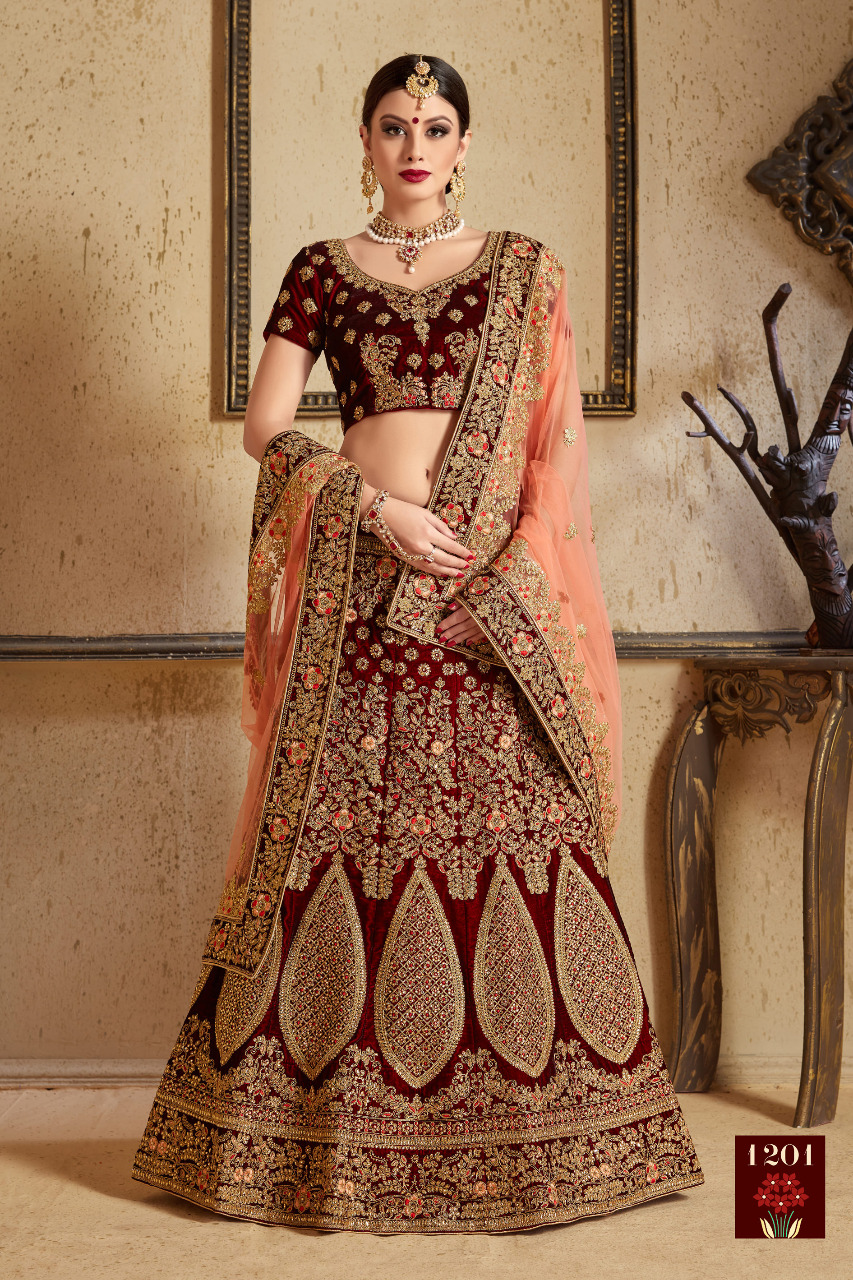 Diwali Series 1201 To 1208 Velvet Heavy Embroidered Designer Wedding Wear Lehnga Wholesale Supplier And Dealer India