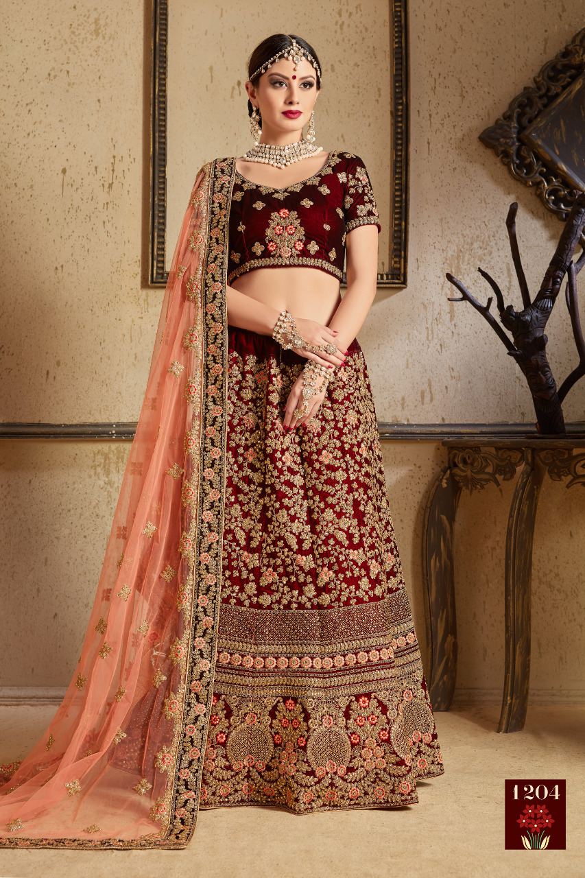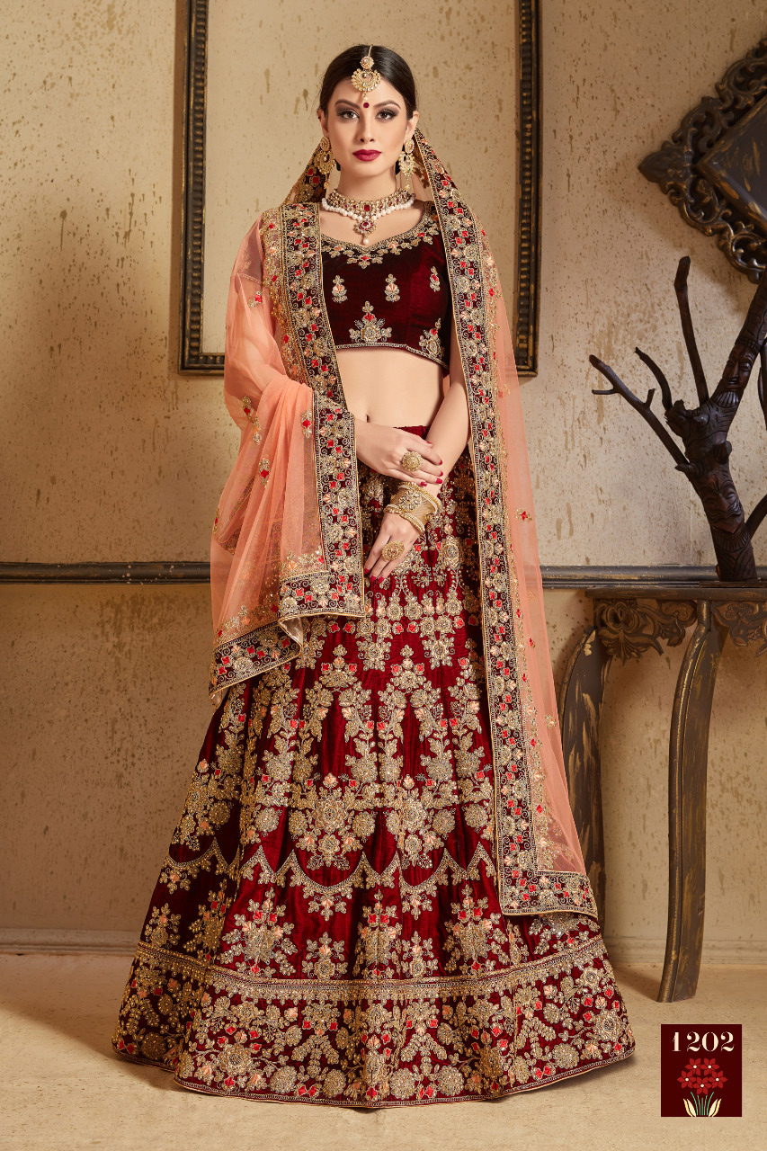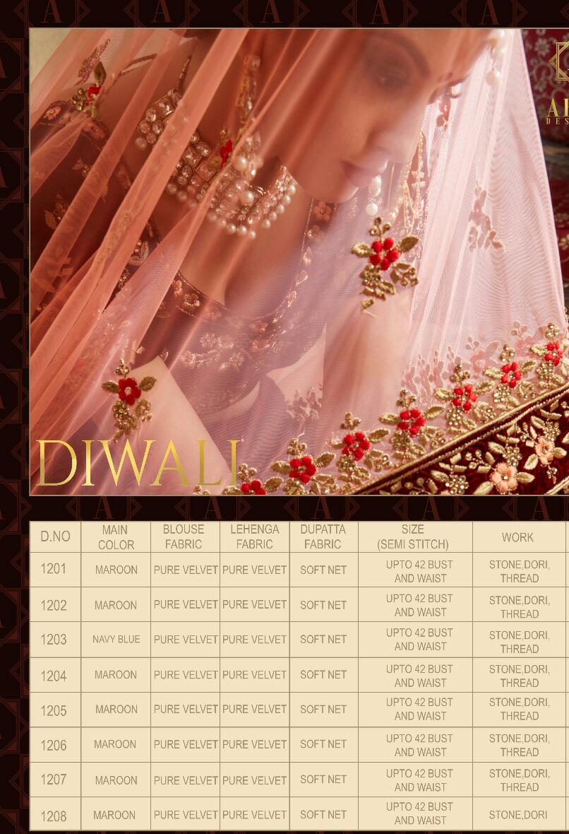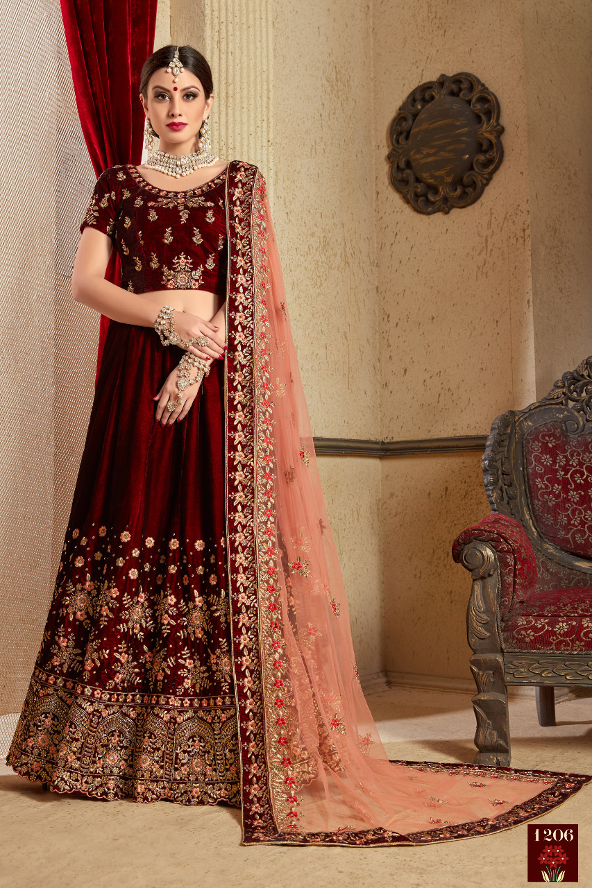 Diwali Series 1201 To 1208 Velvet Heavy Embroidered Designer Wedding Wear Lehnga Wholesale Supplier And Dealer India