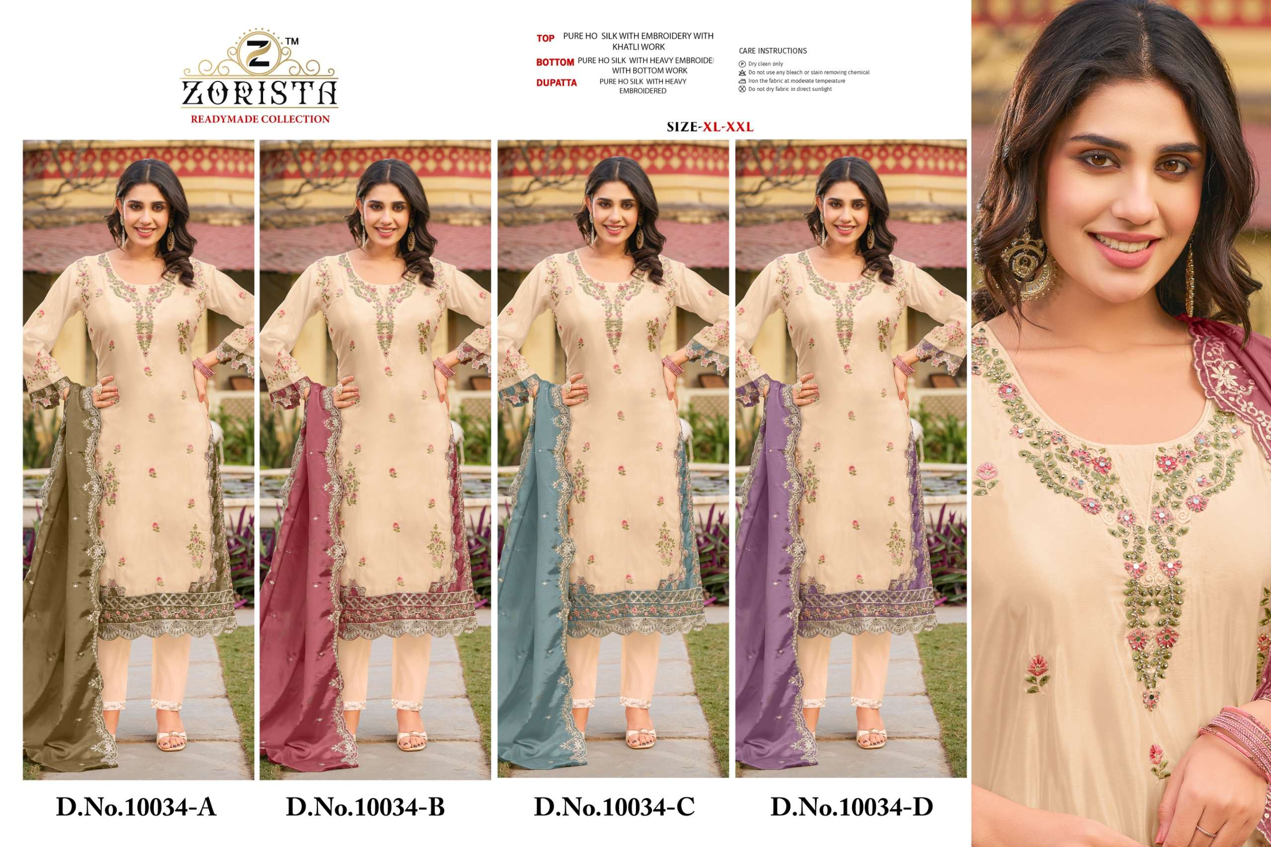 Buy Online DNO 10034 A B C D by ZORISTA suit collection manufacturers surat 4 Pcs of Full Catalogue at Wholesale Price. Looking for DNO 10034 A B C D by ZORISTA suit collection manufacturers surat Full Catalouge at Best Price? Buy Now DNO 10034 A B C D by ZORISTA suit collection manufacturers surat at Wholesale Rate of Rs 6396 with Total 4 Pcs from authroized dealer and supplier of BRAND'S Brand. Cost of Each piece is just only Rs 1599 which is very low and affordable price to resale the product in your retail store ,This is Surat based Wholesale Supplier & Dealer of BRAND'S Brand. Click on Brand name to Know more about BRAND'S Brand's products.Call or Whatsapp on 9898838984 for booking or enquiry
