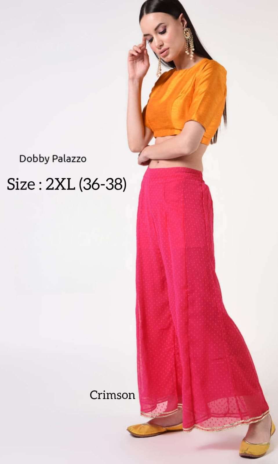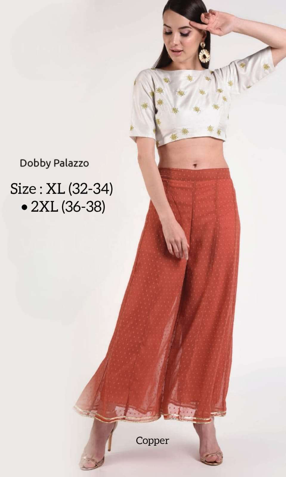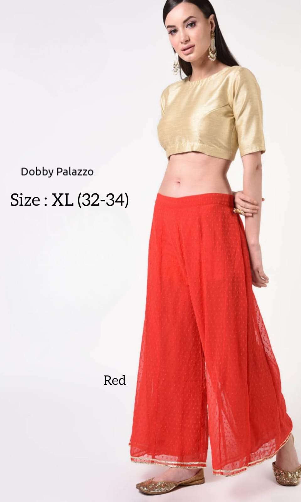 *DOBBY PALAZZO* *Fabric:* Premium Georgette Dobby with Matching Inner *Style:* Ethnic & Western *USP1:* Double Stitch Gota *USP2:* Kalidaar Flare