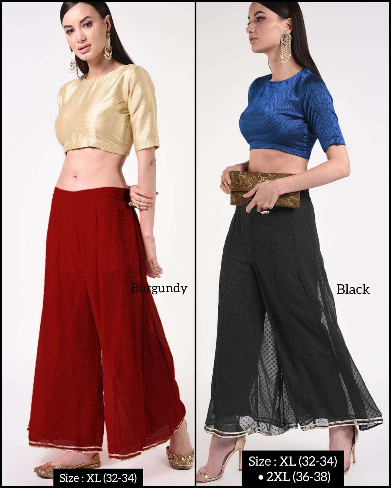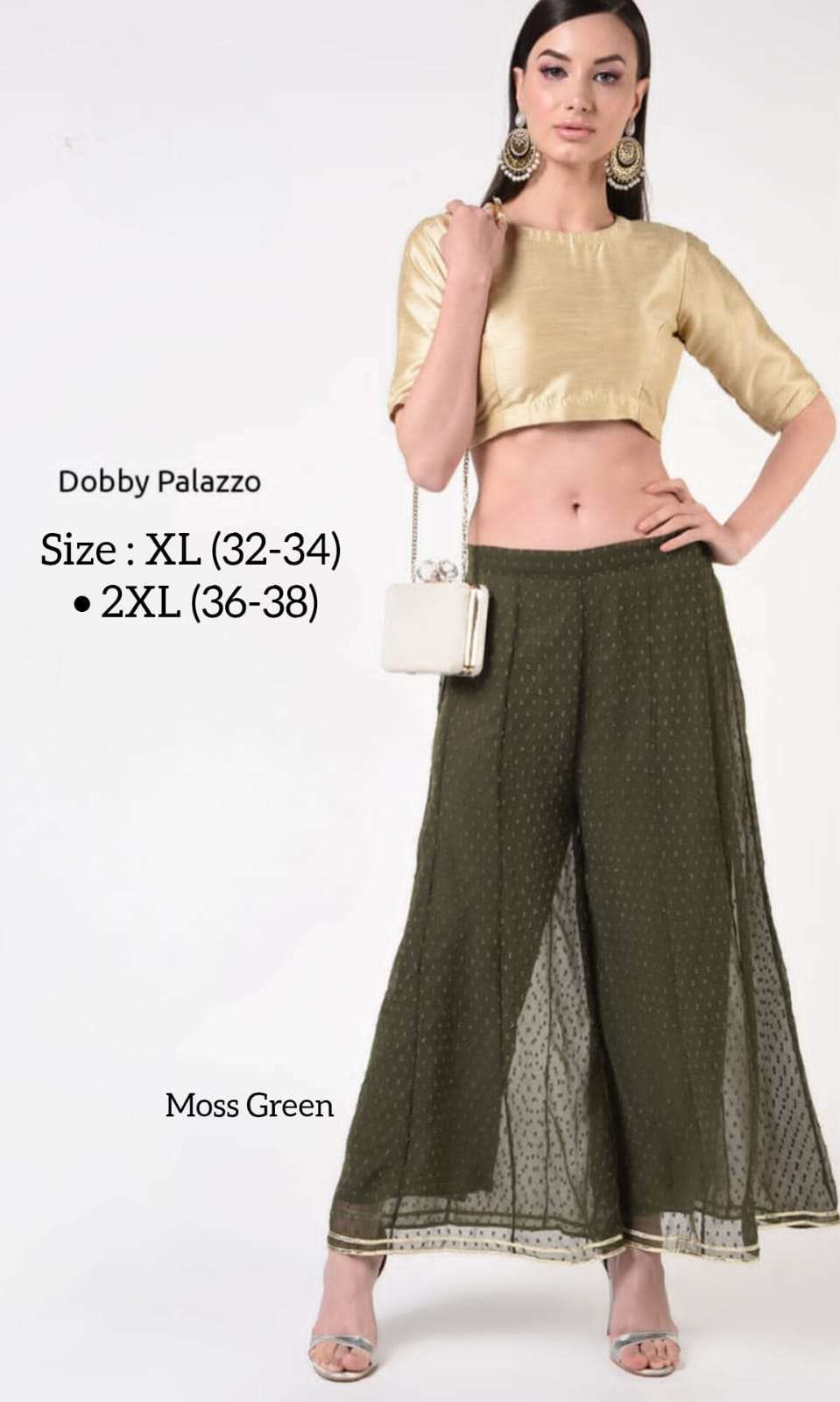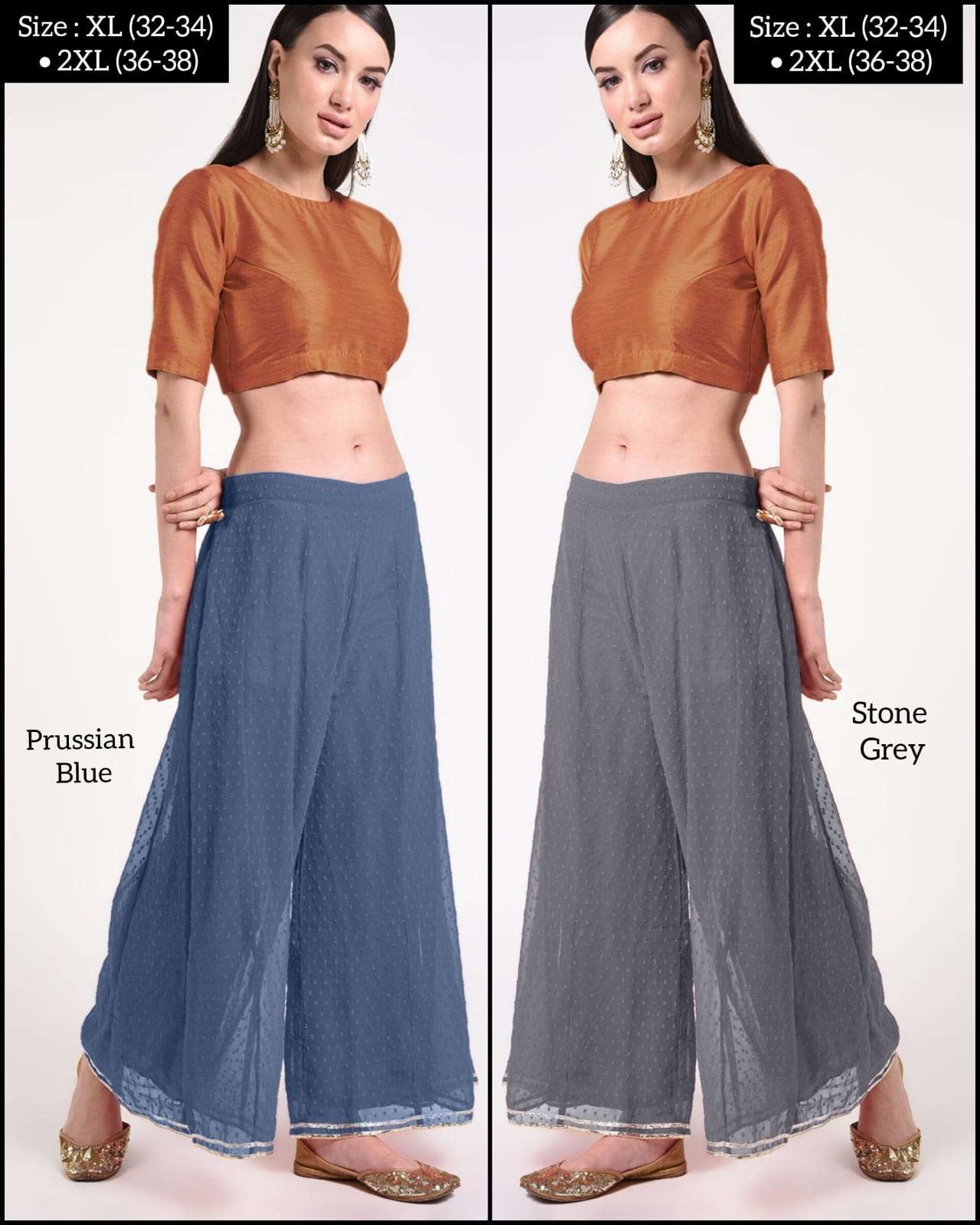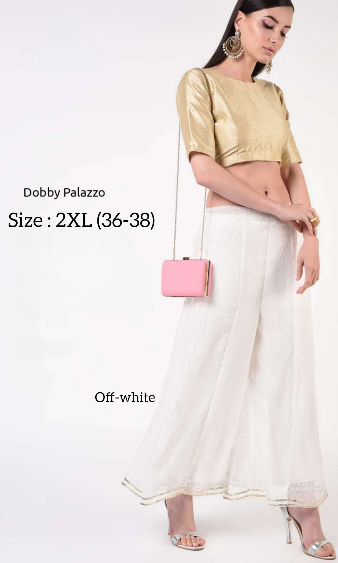 *DOBBY PALAZZO* *Fabric:* Premium Georgette Dobby with Matching Inner *Style:* Ethnic & Western *USP1:* Double Stitch Gota *USP2:* Kalidaar Flare