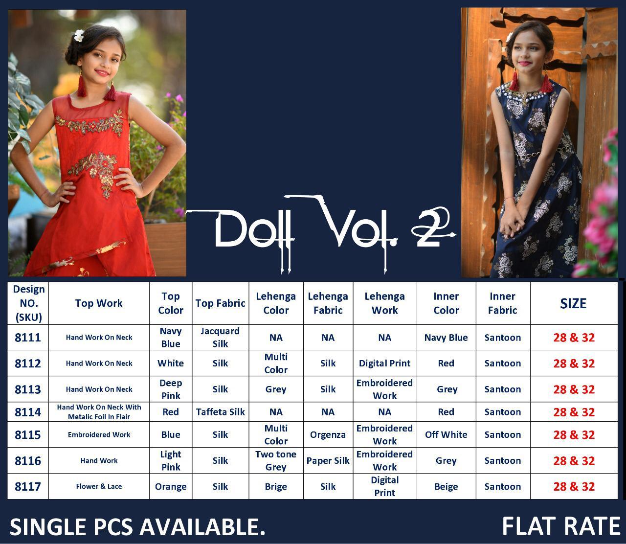 Buy Online Doll Vol 2 Kids Ready To Wear Gown Collection Wholesale Supplier India 7 Pcs of Full Catalogue at Wholesale Price. Looking for Doll Vol 2 Kids Ready To Wear Gown Collection Wholesale Supplier India Full Catalouge at Best Price? Buy Now Doll Vol 2 Kids Ready To Wear Gown Collection Wholesale Supplier India at Wholesale Rate of Rs 10493 with Total 7 Pcs from authroized dealer and supplier of Brand. Cost of Each piece is just only Rs 1499 which is very low and affordable price to resale the product in your retail store ,This is Surat based Wholesale Supplier & Dealer of Brand. Click on Brand name to Know more about Brand's products.Call or Whatsapp on 9898838984 for booking or enquiry