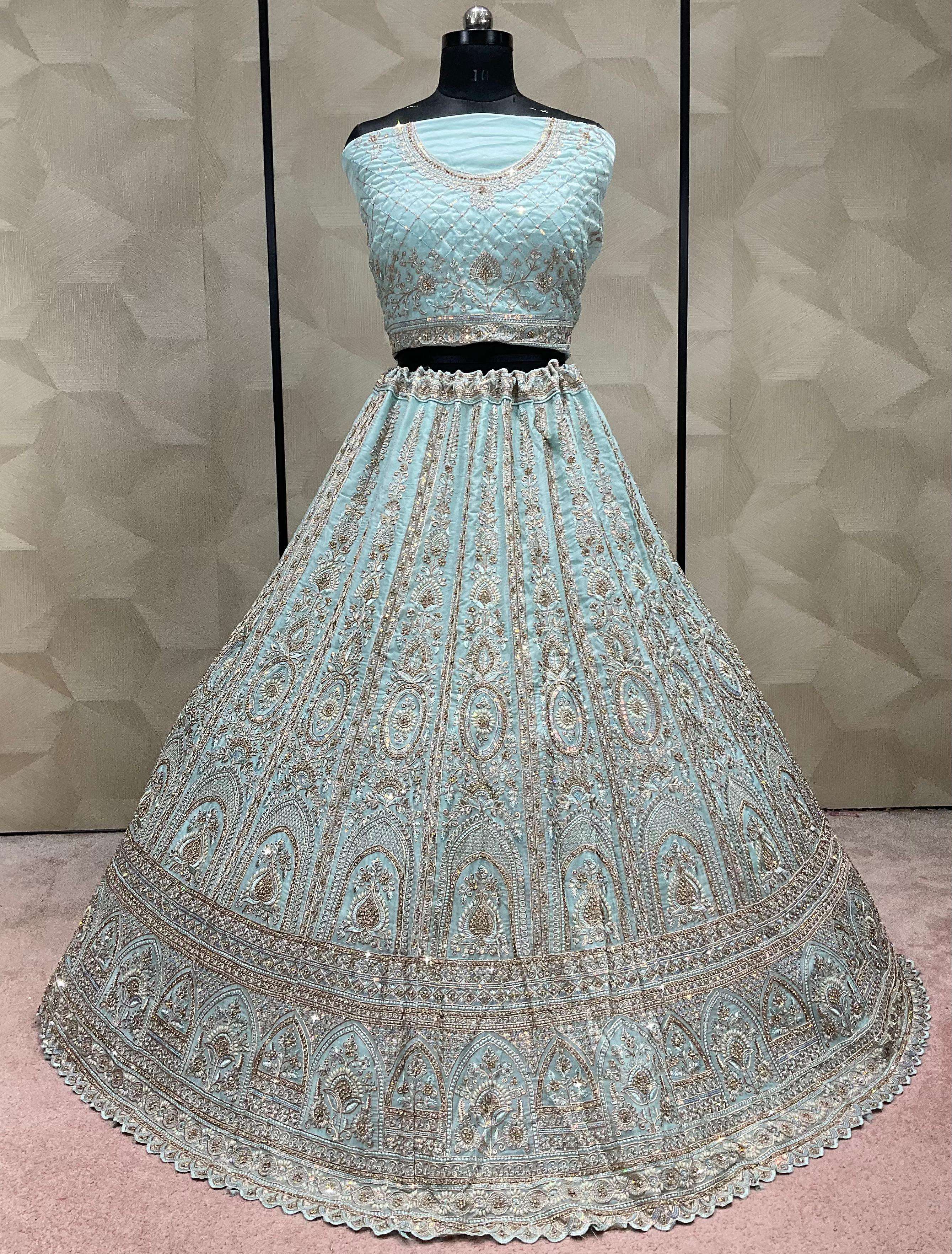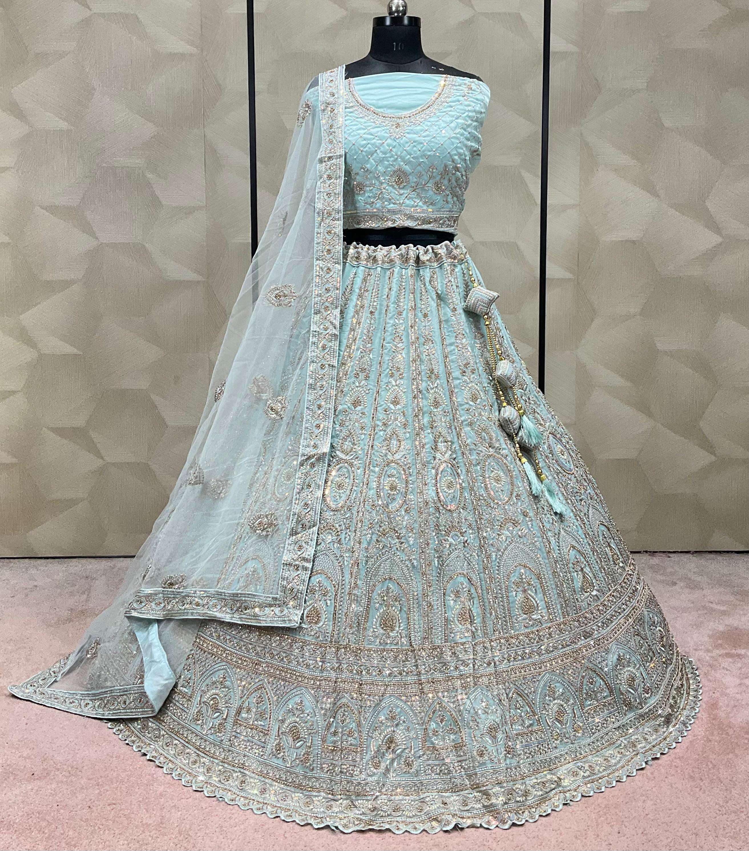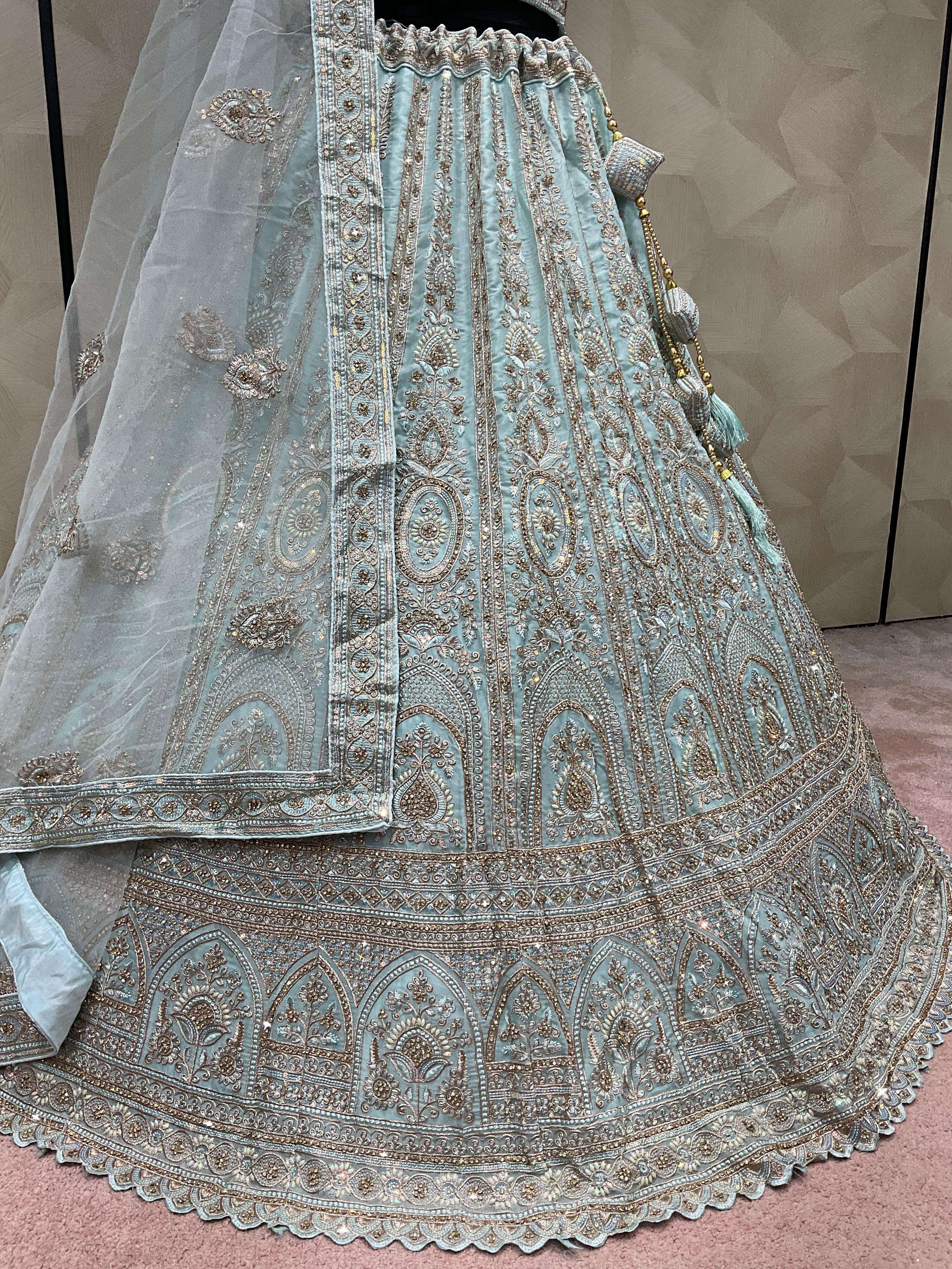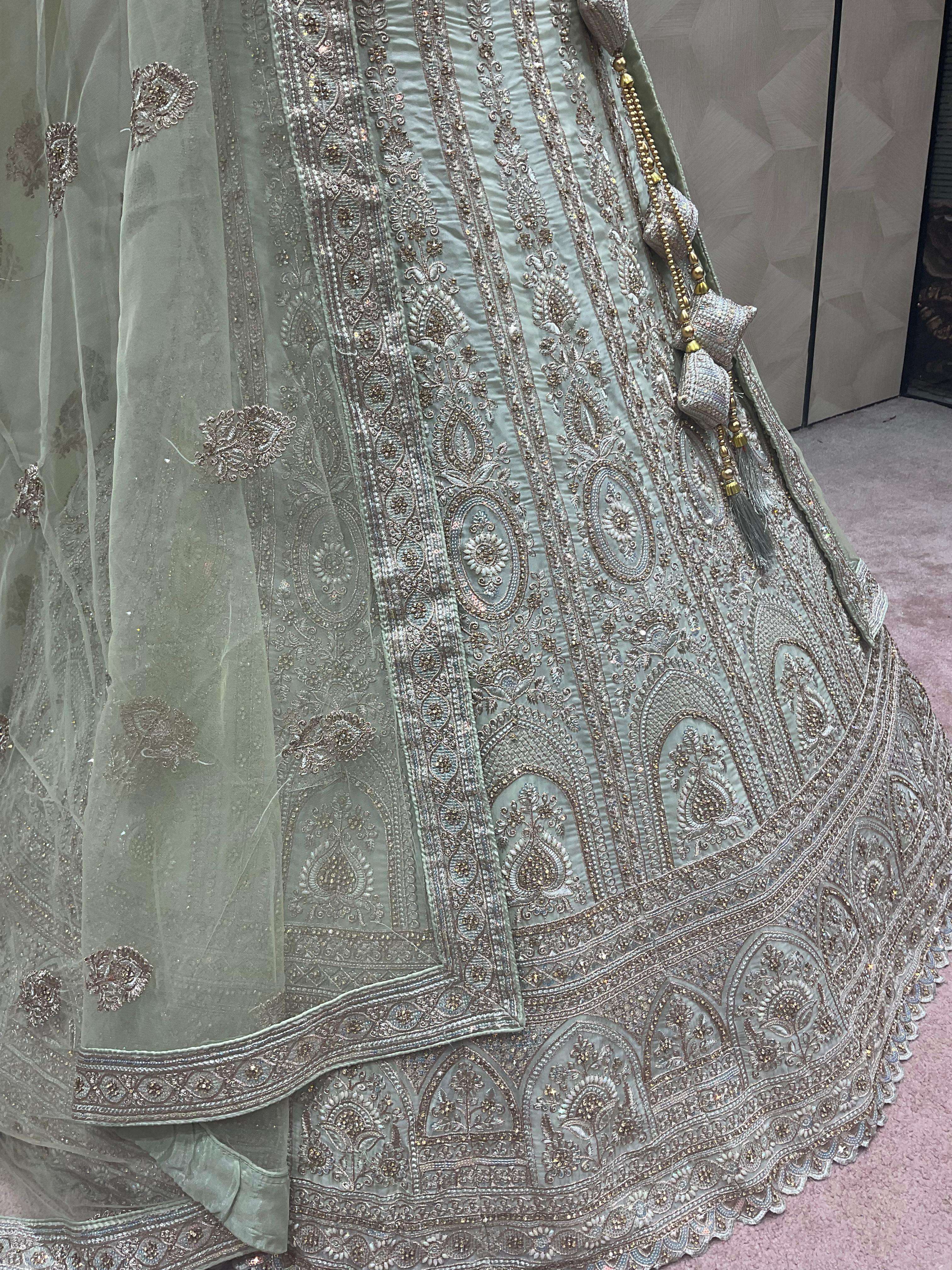 Lehenga-crystal fabric with zarkan Blouse-crystal with zarkan sequence work Dupatta-1-net