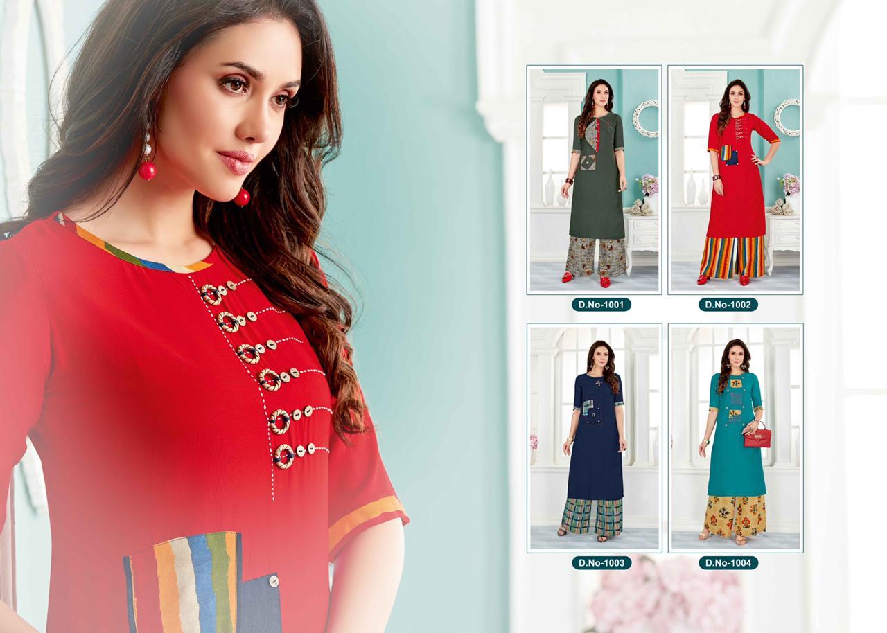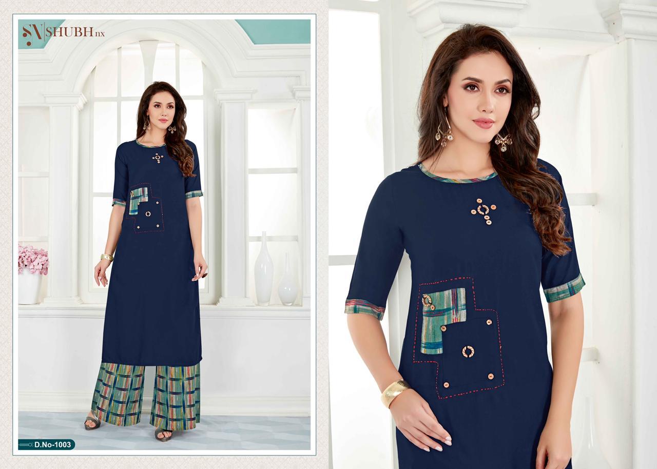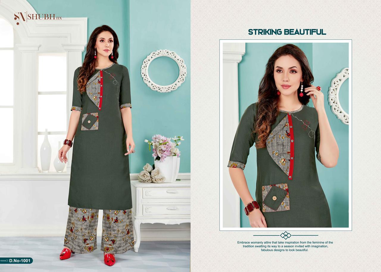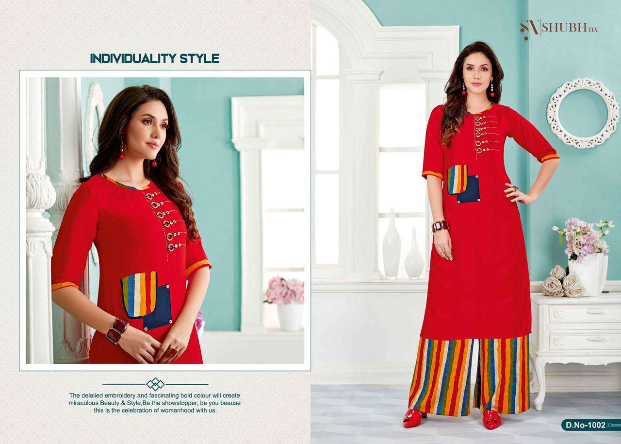 Buy Online Dream Plazo 1 By Shubh Nx Reyon Kurtis With Plazzo Wholesale Supplier India 4 Pcs of Full Catalogue at Wholesale Price. Looking for Dream Plazo 1 By Shubh Nx Reyon Kurtis With Plazzo Wholesale Supplier India Full Catalouge at Best Price? Buy Now Dream Plazo 1 By Shubh Nx Reyon Kurtis With Plazzo Wholesale Supplier India at Wholesale Rate of Rs 2396 with Total 4 Pcs from authroized dealer and supplier of Brand. Cost of Each piece is just only Rs 599 which is very low and affordable price to resale the product in your retail store ,This is Surat based Wholesale Supplier & Dealer of Brand. Click on Brand name to Know more about Brand's products.Call or Whatsapp on 9898838984 for booking or enquiry