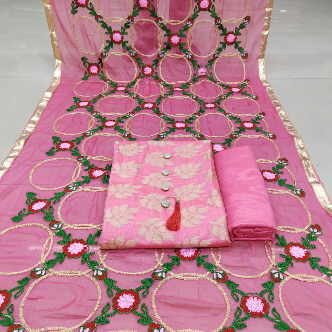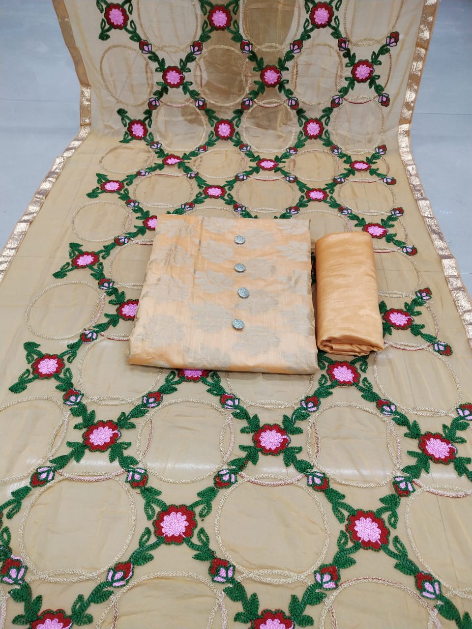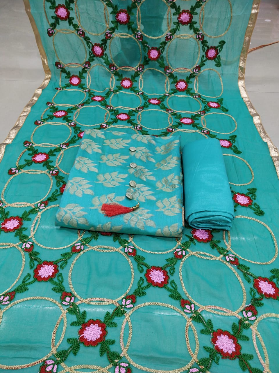 Dress Material Dancy Banarsi Jacquard Kameez With Nazmeen Emb Dupatta Collection Wholesaler Surat