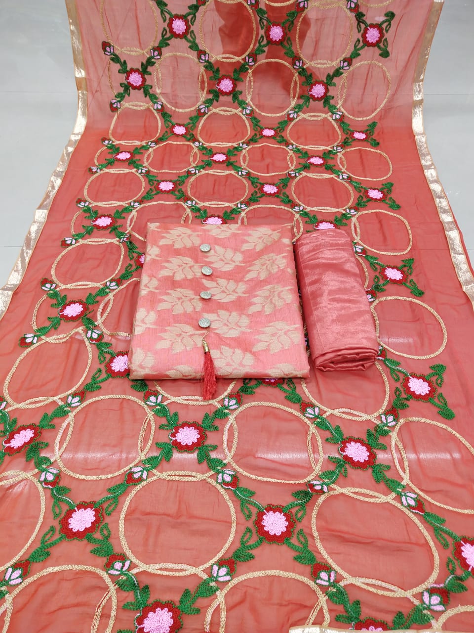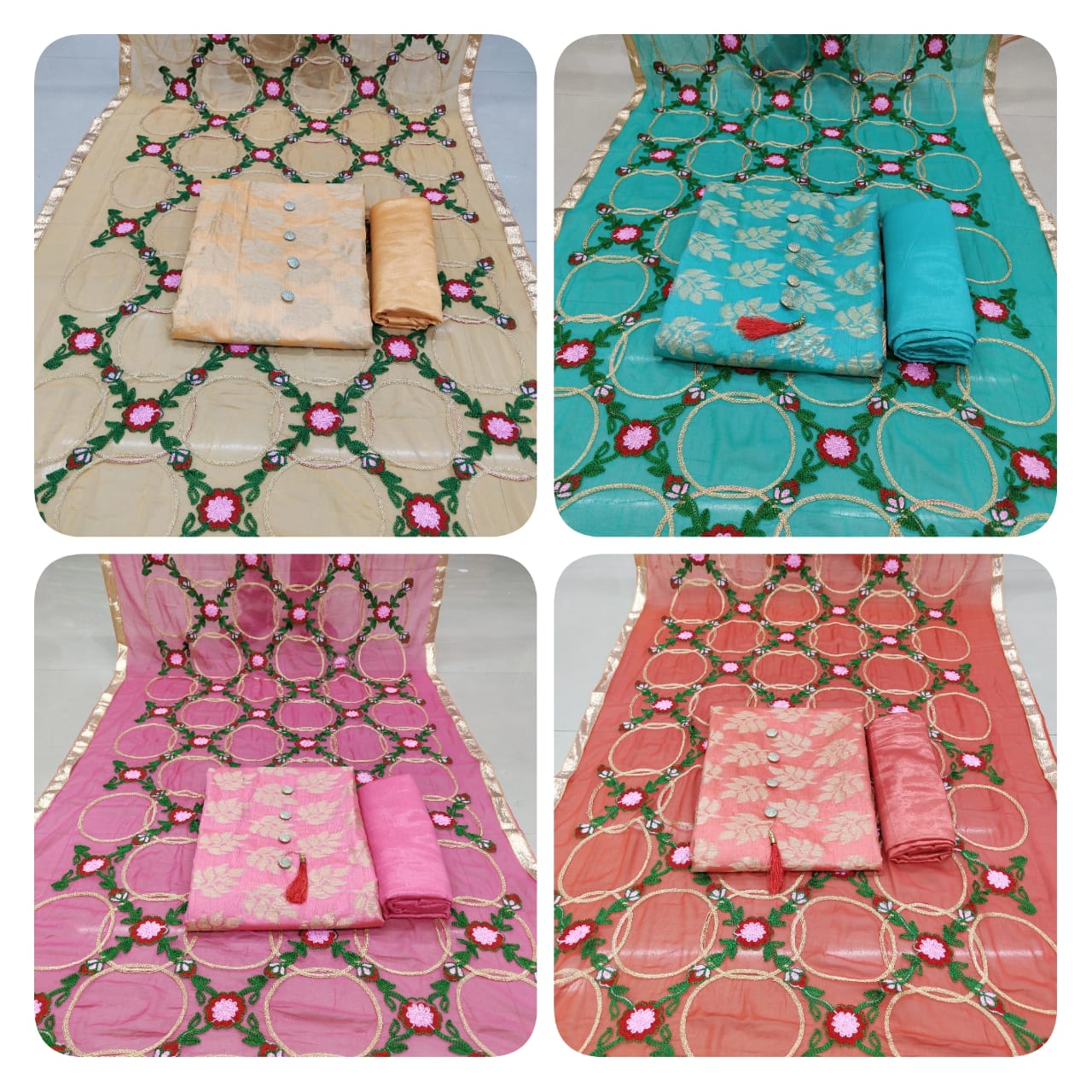 Buy Online Dress Material Dancy Banarsi Jacquard Kameez With Nazmeen Emb Dupatta Collection Wholesaler Surat 4 Pcs of Full Catalogue at Wholesale Price. Looking for Dress Material Dancy Banarsi Jacquard Kameez With Nazmeen Emb Dupatta Collection Wholesaler Surat Full Catalouge at Best Price? Buy Now Dress Material Dancy Banarsi Jacquard Kameez With Nazmeen Emb Dupatta Collection Wholesaler Surat at Wholesale Rate of Rs 2200 with Total 4 Pcs from authroized dealer and supplier of Brand. Cost of Each piece is just only Rs 550 which is very low and affordable price to resale the product in your retail store ,This is Surat based Wholesale Supplier & Dealer of Brand. Click on Brand name to Know more about Brand's products.Call or Whatsapp on 9898838984 for booking or enquiry