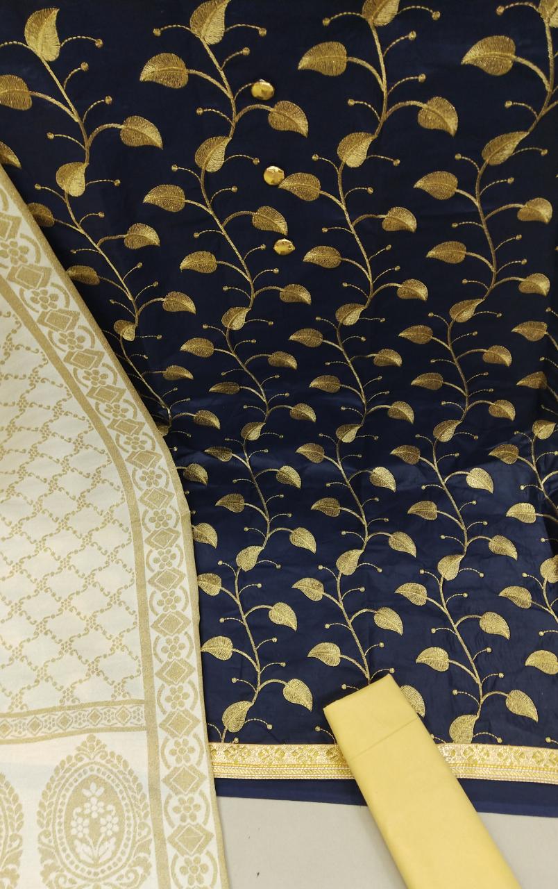 Dress Material Fancy Glace Silk Cotton Emb Salwar Kameez Catlog Wholesaler Surat
