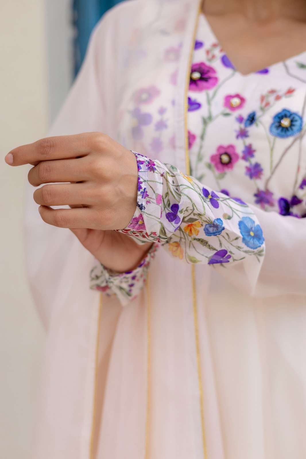 👗 *ANARKALI DETAILS* ✨ Floral Printed Anarkali with Handwork 📏 Sizes: XS(34") | S(36") | M(38") | L(40") | XL(42") | XXL(44") 📐 Length: 48 Inches 💃 Flair: 4.5 Meters 🧵 Full Micro Cotton Inner (Top to Bottom) ✨ Full Sleeves | ❤️ V-Neck ✔️ Fully Stitched with Canvas Patta