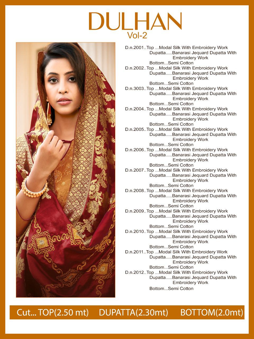 Buy Online Dulhan Vol 2 By Shagun Wholesaler Supplier From Surat 12 Pcs of Full Catalogue at Wholesale Price. Looking for Dulhan Vol 2 By Shagun Wholesaler Supplier From Surat Full Catalouge at Best Price? Buy Now Dulhan Vol 2 By Shagun Wholesaler Supplier From Surat at Wholesale Rate of Rs 9000 with Total 12 Pcs from authroized dealer and supplier of Brand. Cost of Each piece is just only Rs 750 which is very low and affordable price to resale the product in your retail store ,This is Surat based Wholesale Supplier & Dealer of Brand. Click on Brand name to Know more about Brand's products.Call or Whatsapp on 9898838984 for booking or enquiry
