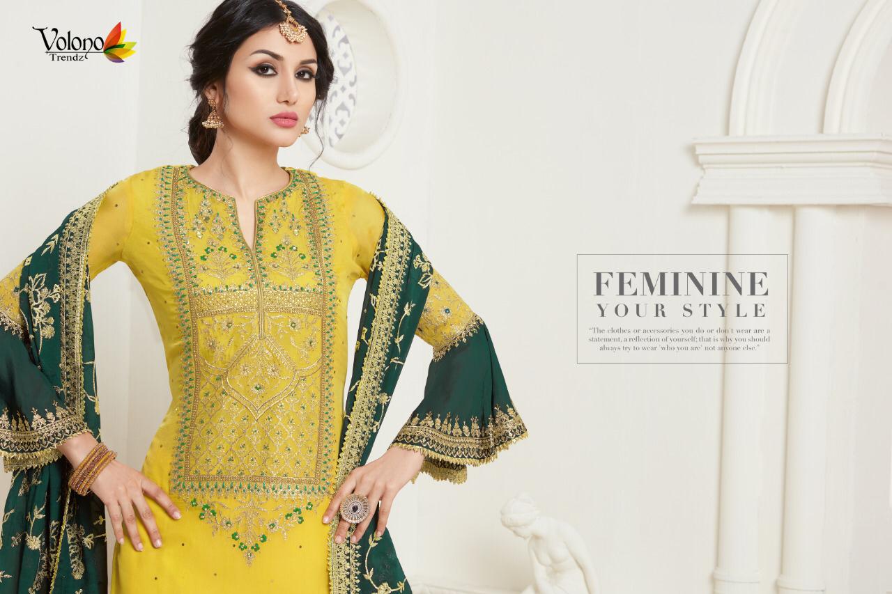 Buy Online Dullhan Vol 3 By Volono Trendz Georgette Embroidered Designer Suits Wholesale Supplier Gujarat 4 Pcs of Full Catalogue at Wholesale Price. Looking for Dullhan Vol 3 By Volono Trendz Georgette Embroidered Designer Suits Wholesale Supplier Gujarat Full Catalouge at Best Price? Buy Now Dullhan Vol 3 By Volono Trendz Georgette Embroidered Designer Suits Wholesale Supplier Gujarat at Wholesale Rate of Rs 6780 with Total 4 Pcs from authroized dealer and supplier of VOLONO TRENDZ Brand. Cost of Each piece is just only Rs 1695 which is very low and affordable price to resale the product in your retail store ,This is Surat based Wholesale Supplier & Dealer of VOLONO TRENDZ Brand. Click on Brand name to Know more about VOLONO TRENDZ Brand's products.Call or Whatsapp on 9898838984 for booking or enquiry