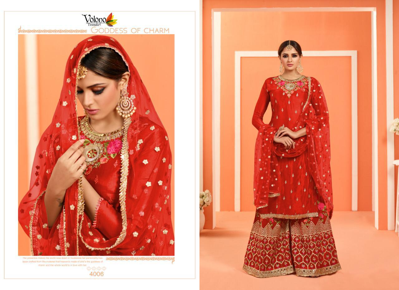 Dullhan Vol 4 By Volono Trendz Series 4001 To 4006 Designer Party Wear Suits Set And Single Wholesale Supplier Gujarat
