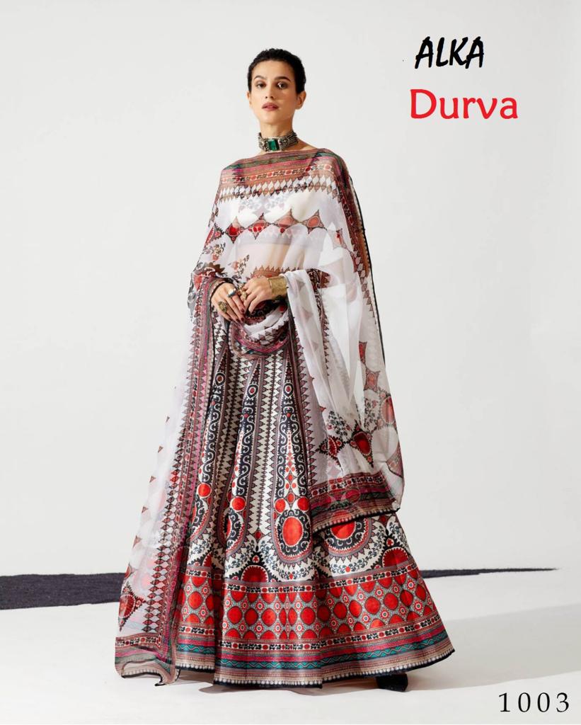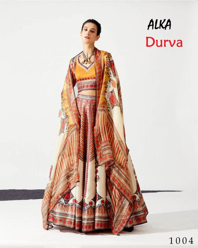 Buy Online Durva By Alka Fancy Lehangas 6 Pcs of Full Catalogue at Wholesale Price. Looking for Durva By Alka Fancy Lehangas Full Catalouge at Best Price? Buy Now Durva By Alka Fancy Lehangas at Wholesale Rate of Rs 12510 with Total 6 Pcs from authroized dealer and supplier of Brand. Cost of Each piece is just only Rs 2085 which is very low and affordable price to resale the product in your retail store ,This is Surat based Wholesale Supplier & Dealer of Brand. Click on Brand name to Know more about Brand's products.Call or Whatsapp on 9898838984 for booking or enquiry