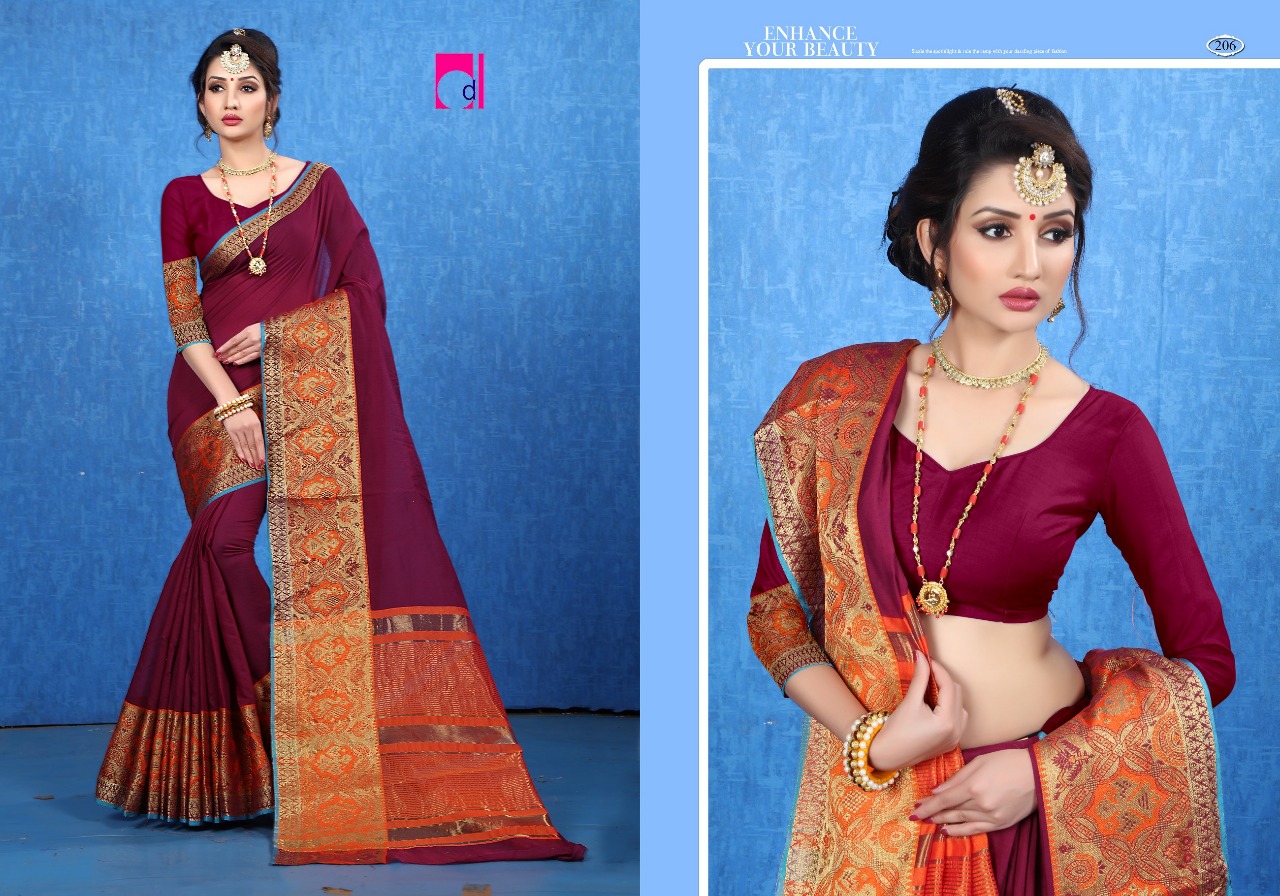 Dwarkanath Silk Mills Bindiya 201 Series Cotton Silk Saree Catlog Wholesale Supplier And Trader Surat