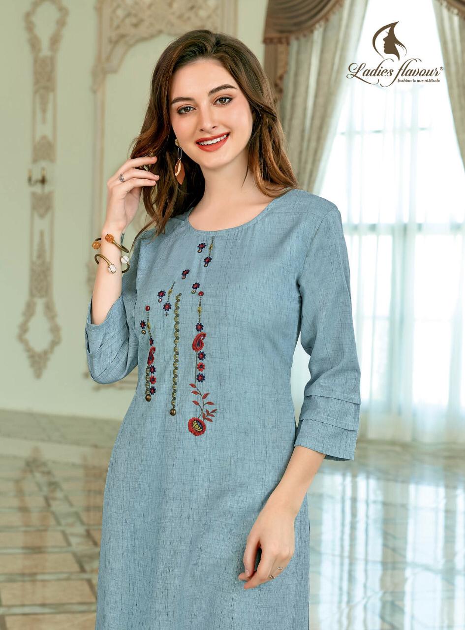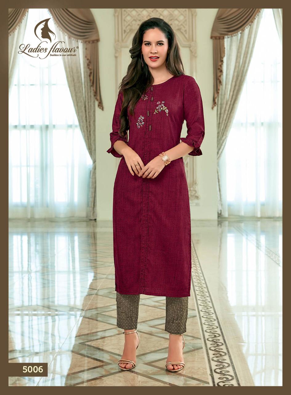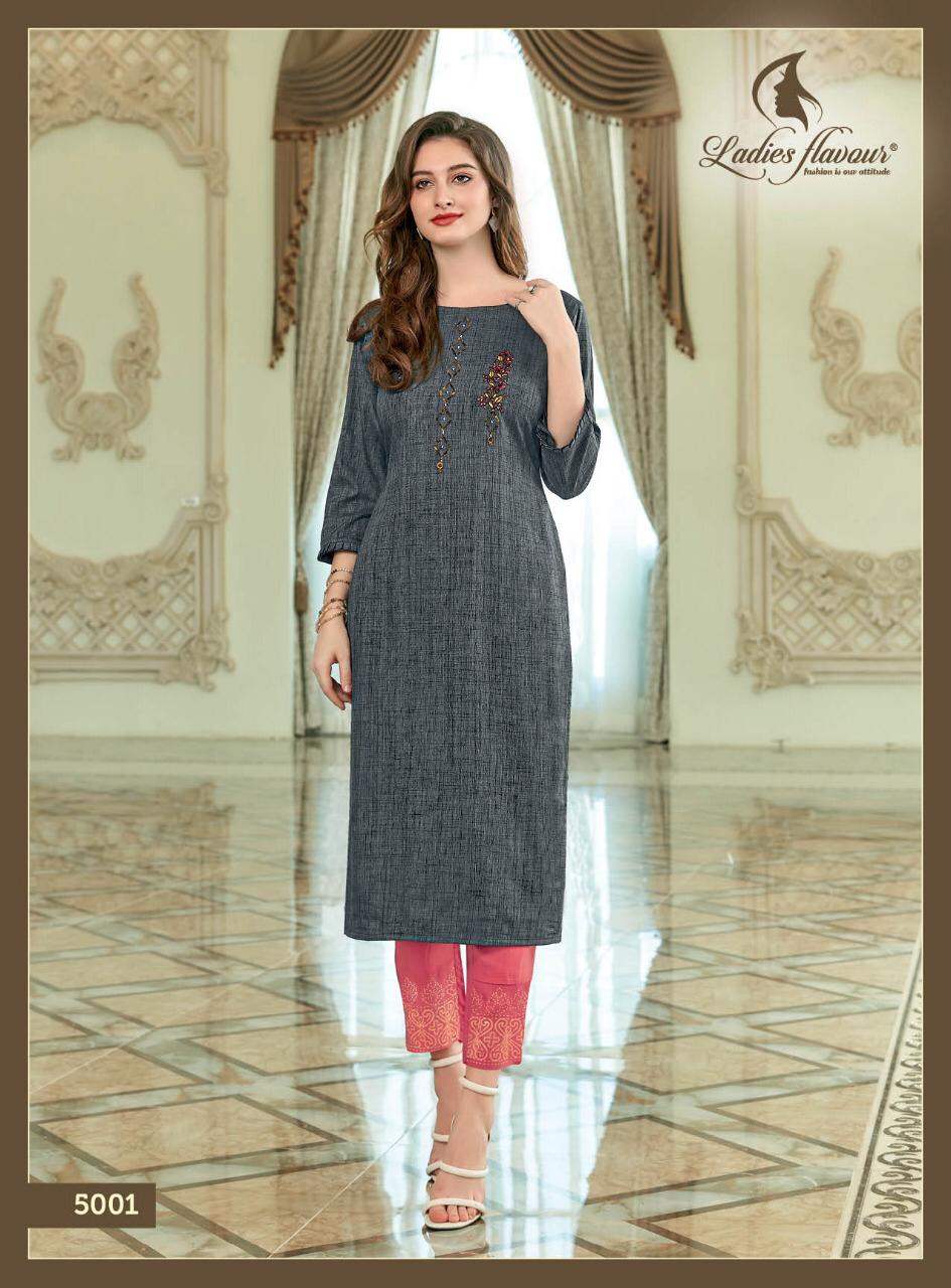 Dzire Vol 2 By Ladies Flavour Reyon Kurtis With Pant Set And Single Wholesale Supplier Surat