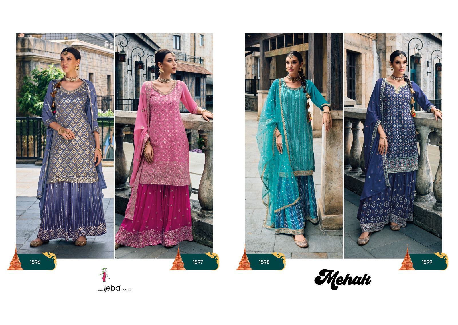 Buy Online Eba Lifestyle Mehak Georgette Palazo Redymade Collection 4 Pcs of Full Catalogue at Wholesale Price. Looking for Eba Lifestyle Mehak Georgette Palazo Redymade Collection Full Catalouge at Best Price? Buy Now Eba Lifestyle Mehak Georgette Palazo Redymade Collection at Wholesale Rate of Rs 7596 with Total 4 Pcs from authroized dealer and supplier of Eba Lifestyle Brand. Cost of Each piece is just only Rs 1899 which is very low and affordable price to resale the product in your retail store ,This is Surat based Wholesale Supplier & Dealer of Eba Lifestyle Brand. Click on Brand name to Know more about Eba Lifestyle Brand's products.Call or Whatsapp on 9898838984 for booking or enquiry