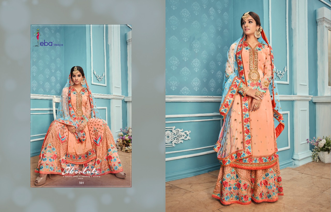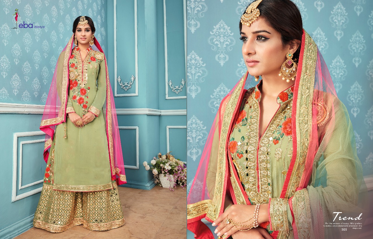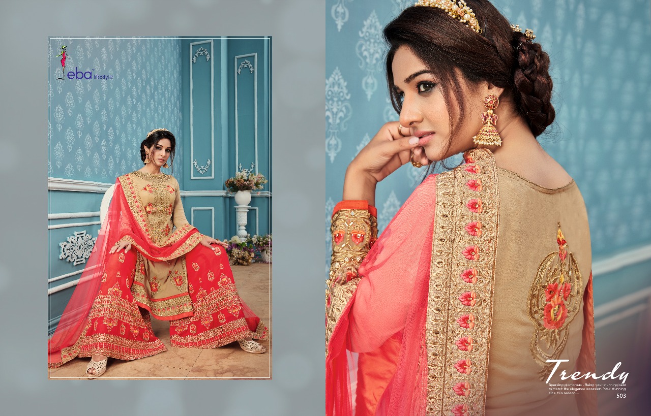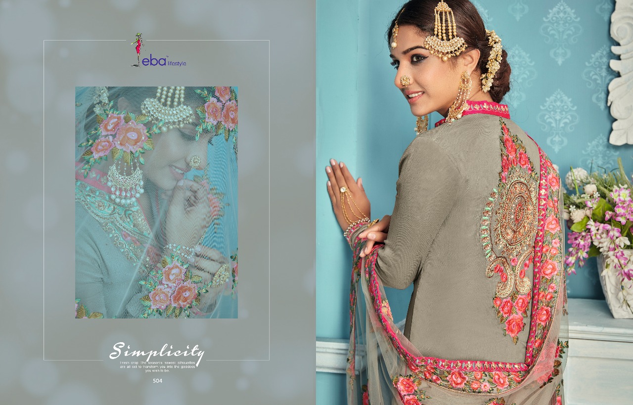 Buy Online Eba Lifstyle Hurma Vol 1 Bridal Collection 501 Series Suits 5 Pcs of Full Catalogue at Wholesale Price. Looking for Eba Lifstyle Hurma Vol 1 Bridal Collection 501 Series Suits Full Catalouge at Best Price? Buy Now Eba Lifstyle Hurma Vol 1 Bridal Collection 501 Series Suits at Wholesale Rate of Rs 9495 with Total 5 Pcs from authroized dealer and supplier of Eba Lifestyle Brand. Cost of Each piece is just only Rs 1899 which is very low and affordable price to resale the product in your retail store ,This is Surat based Wholesale Supplier & Dealer of Eba Lifestyle Brand. Click on Brand name to Know more about Eba Lifestyle Brand's products.Call or Whatsapp on 9898838984 for booking or enquiry