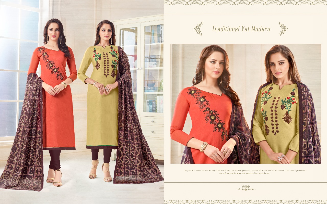 Buy Online Eena Meena Vol 9 By Avc 9001 Series Chanderi Cotton Salwar Kameez Catlog Wholesale Dealer Surat 12 Pcs of Full Catalogue at Wholesale Price. Looking for Eena Meena Vol 9 By Avc 9001 Series Chanderi Cotton Salwar Kameez Catlog Wholesale Dealer Surat Full Catalouge at Best Price? Buy Now Eena Meena Vol 9 By Avc 9001 Series Chanderi Cotton Salwar Kameez Catlog Wholesale Dealer Surat at Wholesale Rate of Rs 7188 with Total 12 Pcs from authroized dealer and supplier of AVC Brand. Cost of Each piece is just only Rs 599 which is very low and affordable price to resale the product in your retail store ,This is Surat based Wholesale Supplier & Dealer of AVC Brand. Click on Brand name to Know more about AVC Brand's products.Call or Whatsapp on 9898838984 for booking or enquiry