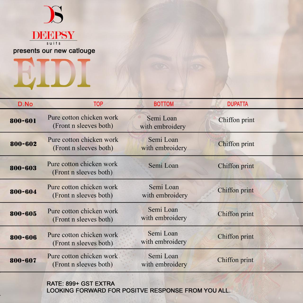 Buy Online Eidi By Deepsy Cotton Pakistani Suits Wholesale Supplier Gujarat 7 Pcs of Full Catalogue at Wholesale Price. Looking for Eidi By Deepsy Cotton Pakistani Suits Wholesale Supplier Gujarat Full Catalouge at Best Price? Buy Now Eidi By Deepsy Cotton Pakistani Suits Wholesale Supplier Gujarat at Wholesale Rate of Rs 6293 with Total 7 Pcs from authroized dealer and supplier of DEEPSY Brand. Cost of Each piece is just only Rs 899 which is very low and affordable price to resale the product in your retail store ,This is Surat based Wholesale Supplier & Dealer of DEEPSY Brand. Click on Brand name to Know more about DEEPSY Brand's products.Call or Whatsapp on 9898838984 for booking or enquiry
