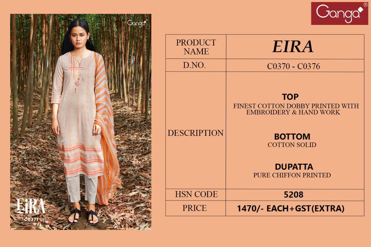 *GANGA* Presents - *EIRA* *TOP-* FINEST COTTON PRINTED WITH EMBROIDERY & HAND WORK *DUPATTA-* PURE CHIFFON PRINTED *BOTTOM-* COTTON *RATE-* 1470?X 7 DESIGNS Set to set |