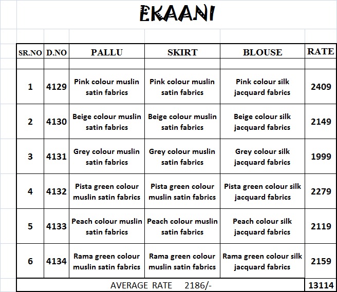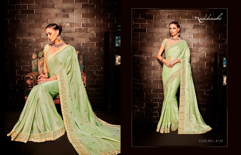 Buy Online Ekkani By Nakkashi 4129 Series Fancy Designer Party Wear Saree Collection Wholesaler Surat 6 Pcs of Full Catalogue at Wholesale Price. Looking for Ekkani By Nakkashi 4129 Series Fancy Designer Party Wear Saree Collection Wholesaler Surat Full Catalouge at Best Price? Buy Now Ekkani By Nakkashi 4129 Series Fancy Designer Party Wear Saree Collection Wholesaler Surat at Wholesale Rate of Rs 13116 with Total 6 Pcs from authroized dealer and supplier of NAKKASHI Brand. Cost of Each piece is just only Rs 2186 which is very low and affordable price to resale the product in your retail store ,This is Surat based Wholesale Supplier & Dealer of NAKKASHI Brand. Click on Brand name to Know more about NAKKASHI Brand's products.Call or Whatsapp on 9898838984 for booking or enquiry