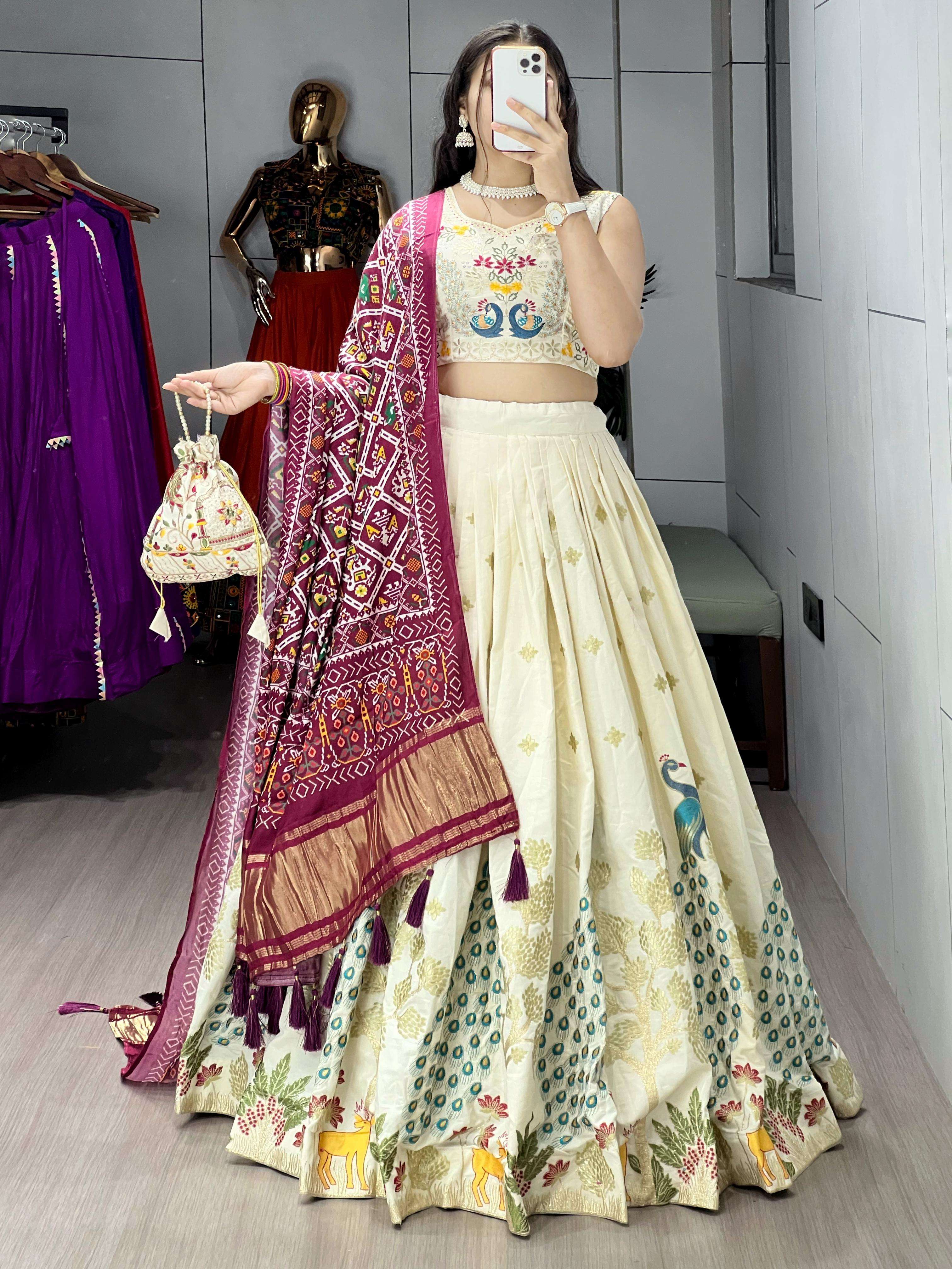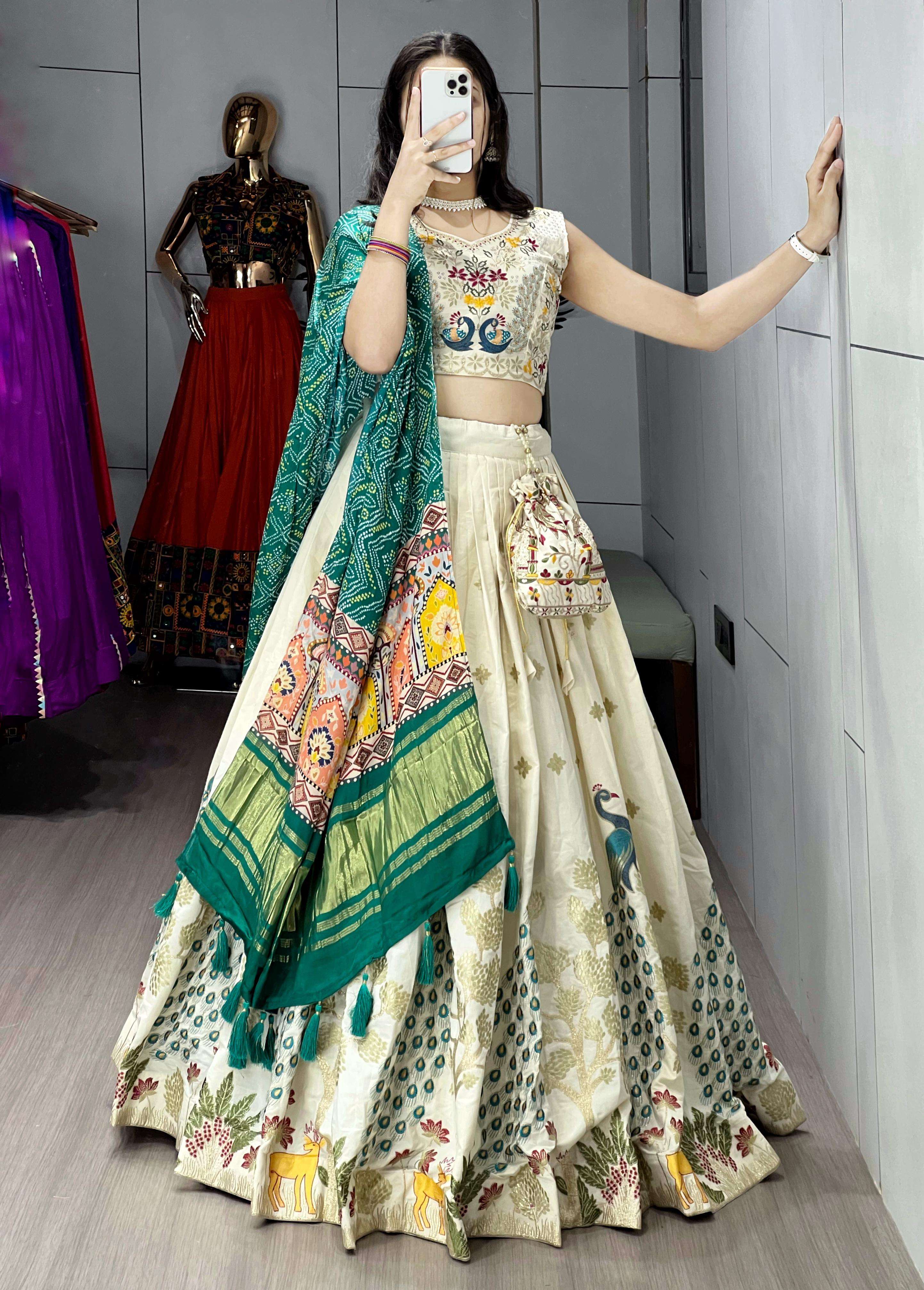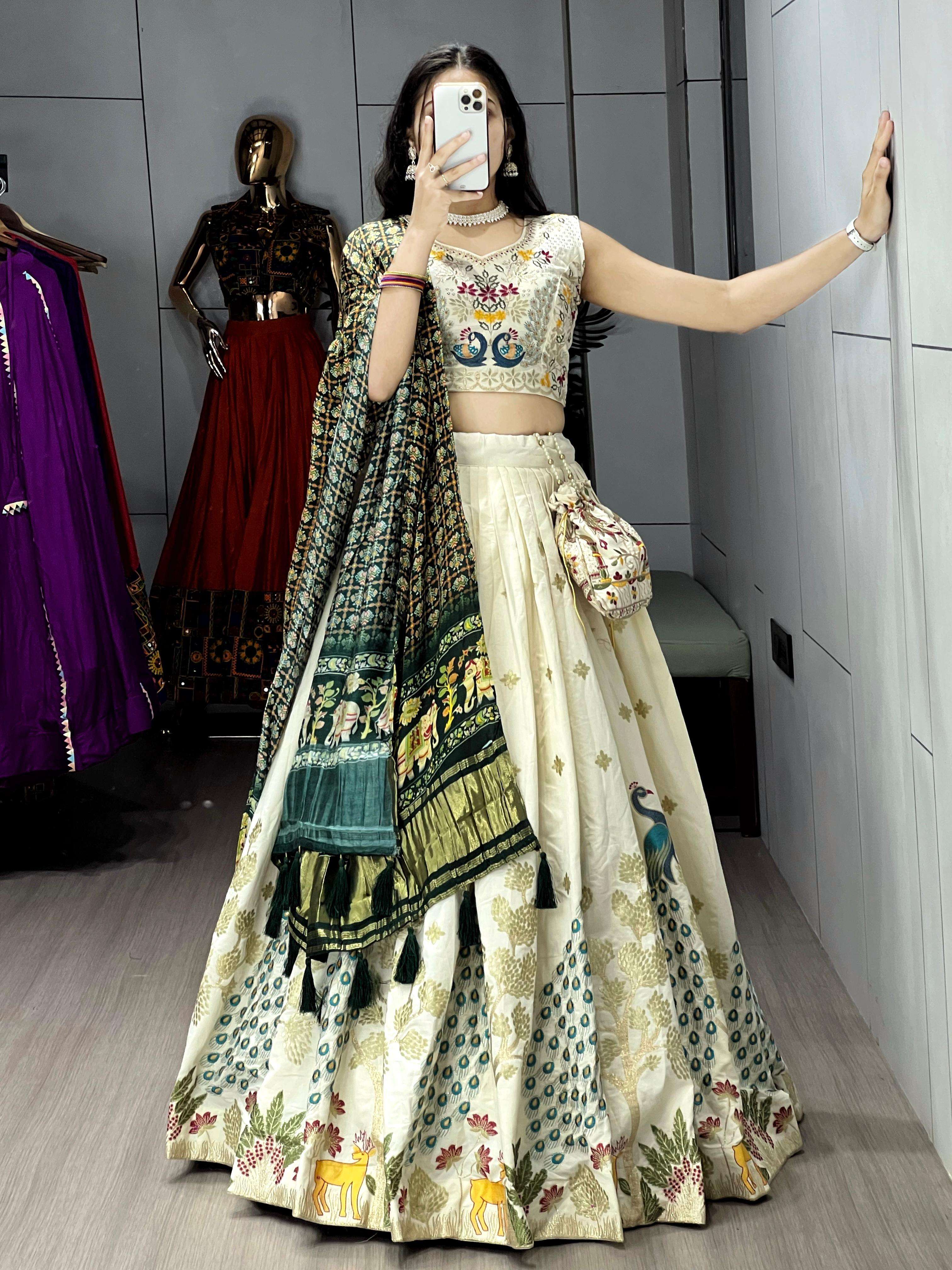 *Package Contain* Lehenga, Blouse, Gaji Dupatta, Drawstring with Zip, Tassels, Batwa
