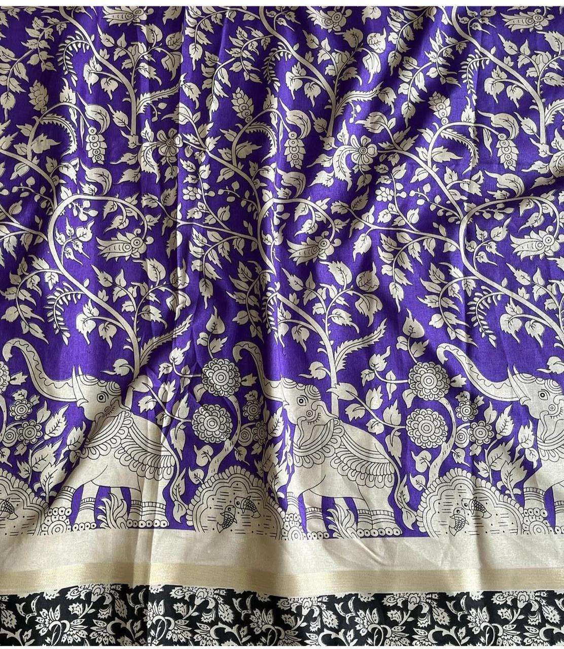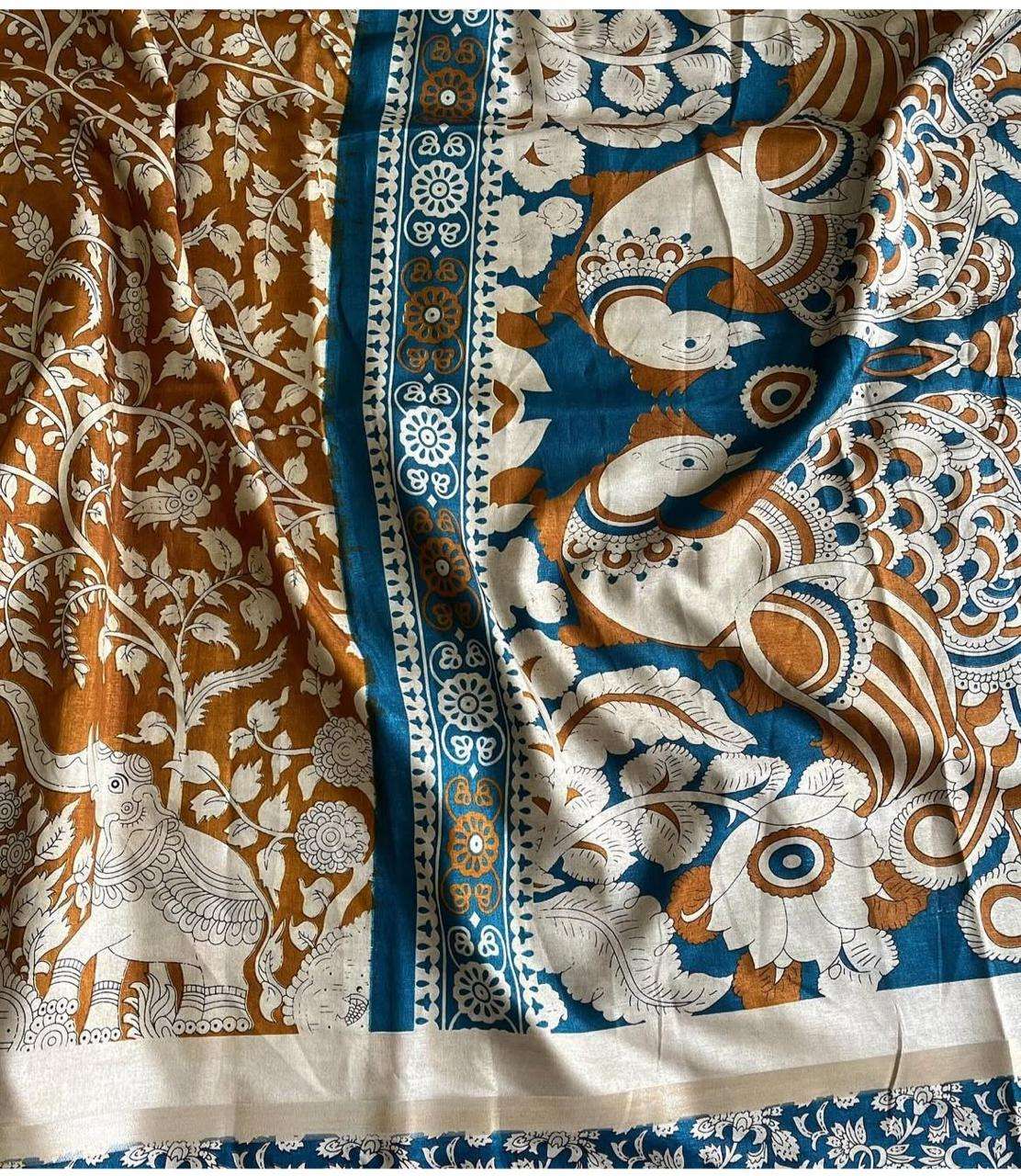 Elegant Maheshwari Silk Saree with Kalamkari Design & Contrast Border